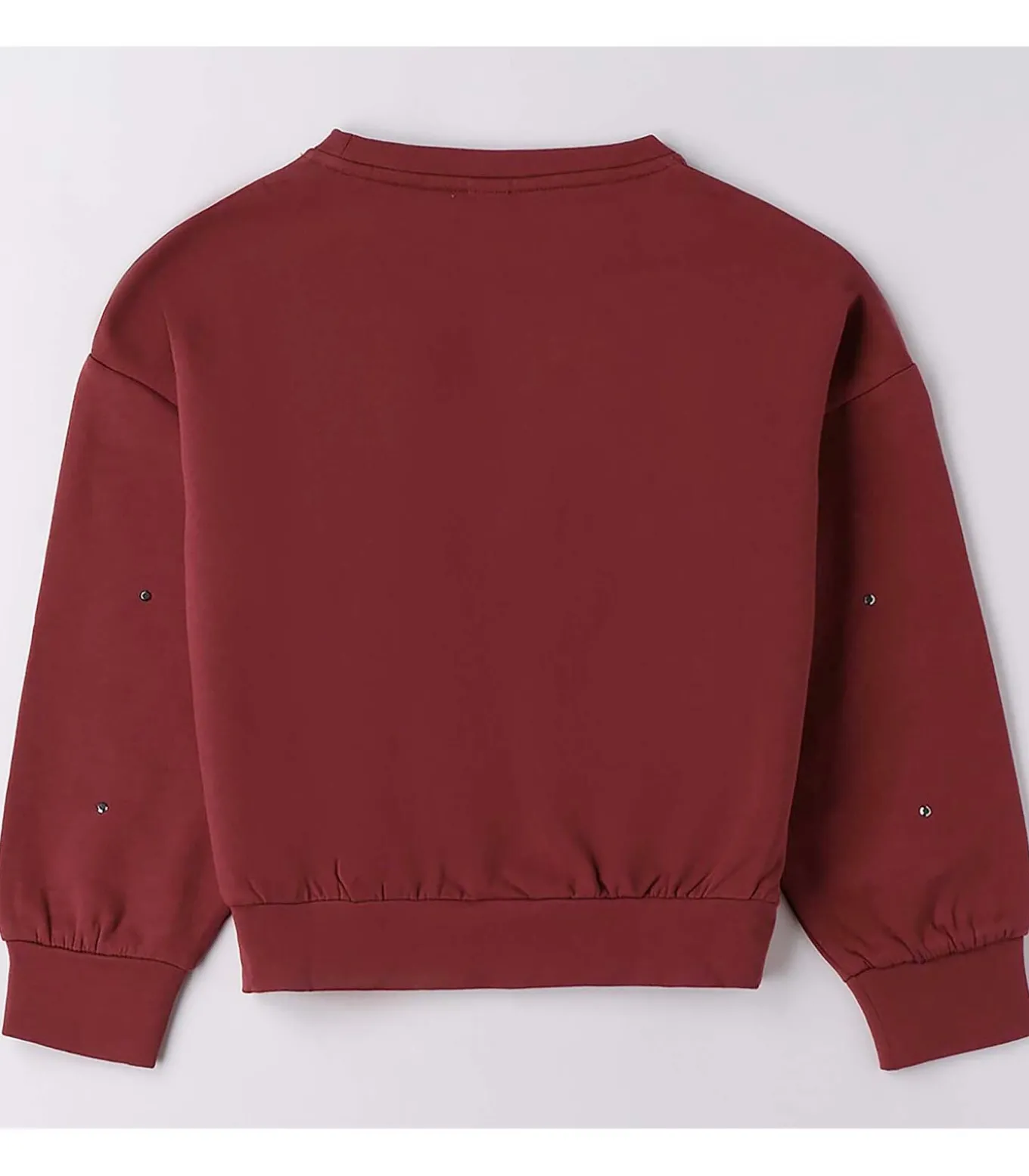 Kleur: Ruby. Samenstelling: Lichtgewicht geborstelde stretch sweatshirt. Mouwen: Lang. Halslijn: Ronde hals. Details: Meisjessweater versierd met strass–applicaties, met elastische zoom en manchetten voor een comfortabele en vrouwelijke pasvorm. Gebruik: Ideaal voor casual looks met een vleugje glitter, perfect voor school, vrije tijd en speciale gelegenheden.