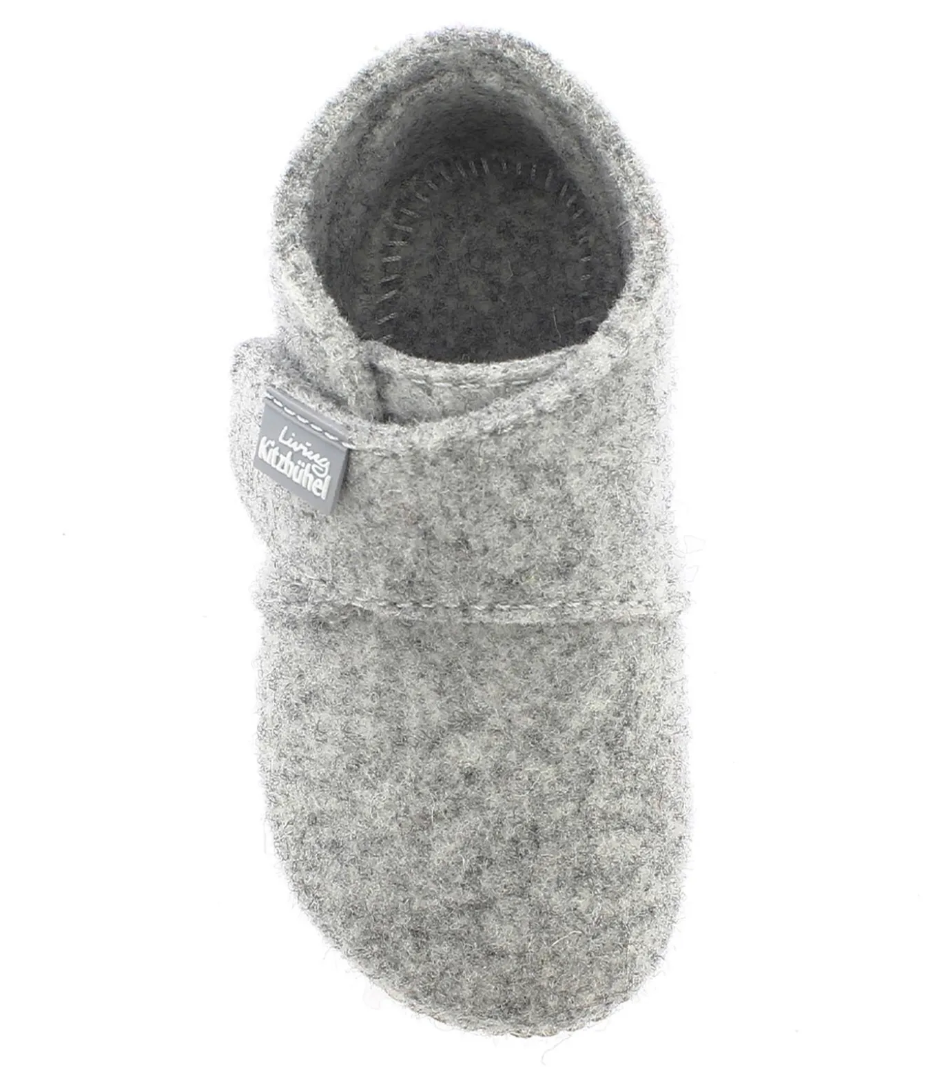 Deze klittenbandslipper van robuust vilt is de ideale metgezel voor avontuurlijke kinderen. De antislip, slijtvaste natuurrubberen zool zorgt voor een stevige ondergrond. De hoge schacht maakt de schoenen ideaal voor beginners en peuters. Ze zijn bijzonder gemakkelijk aan en uit te trekken dankzij de brede klittenbandsluiting. Zo comfortabel en flexibel dat ze aanvoelen alsof je op blote voeten loopt.