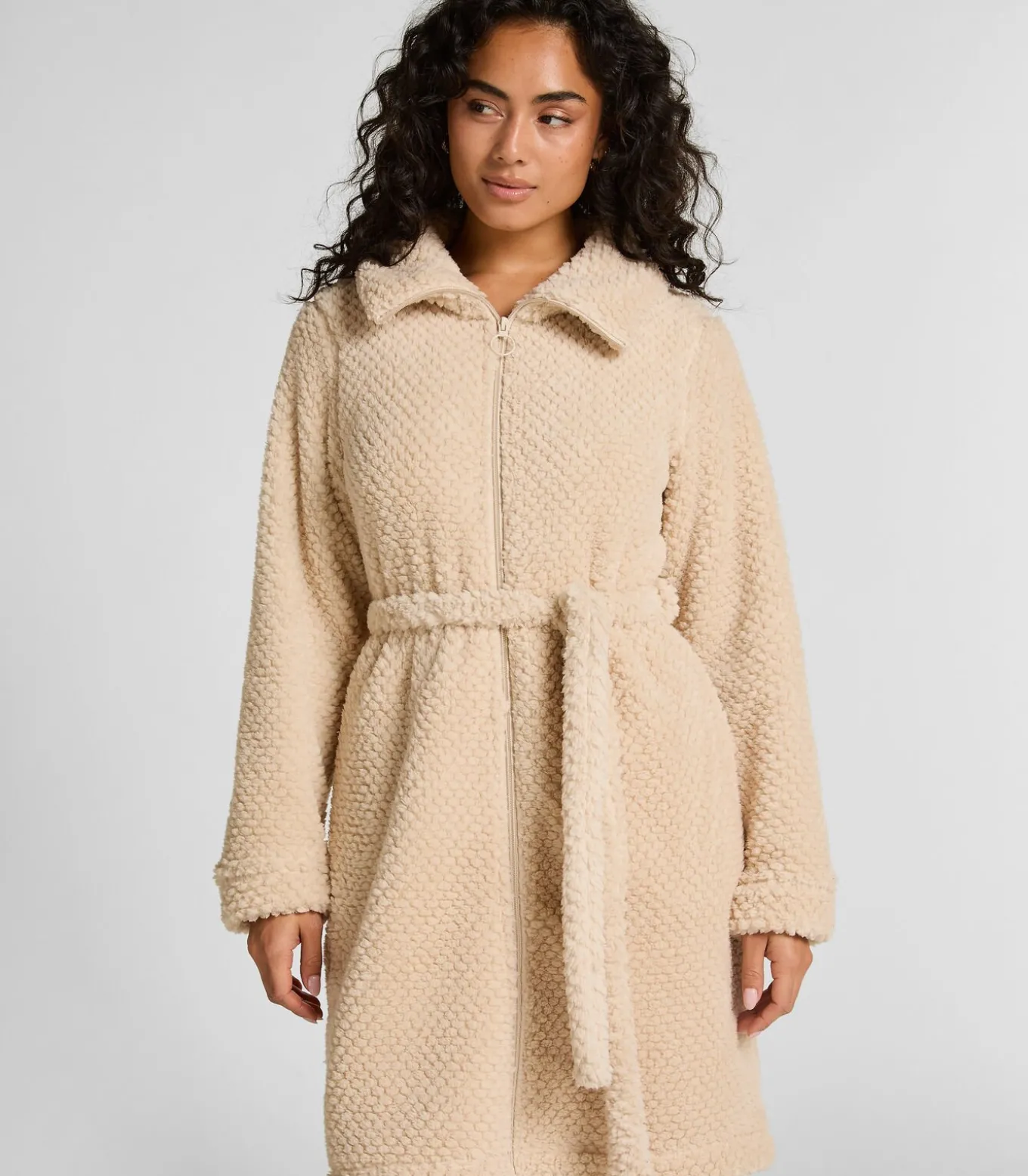 Fleece badjas met rits