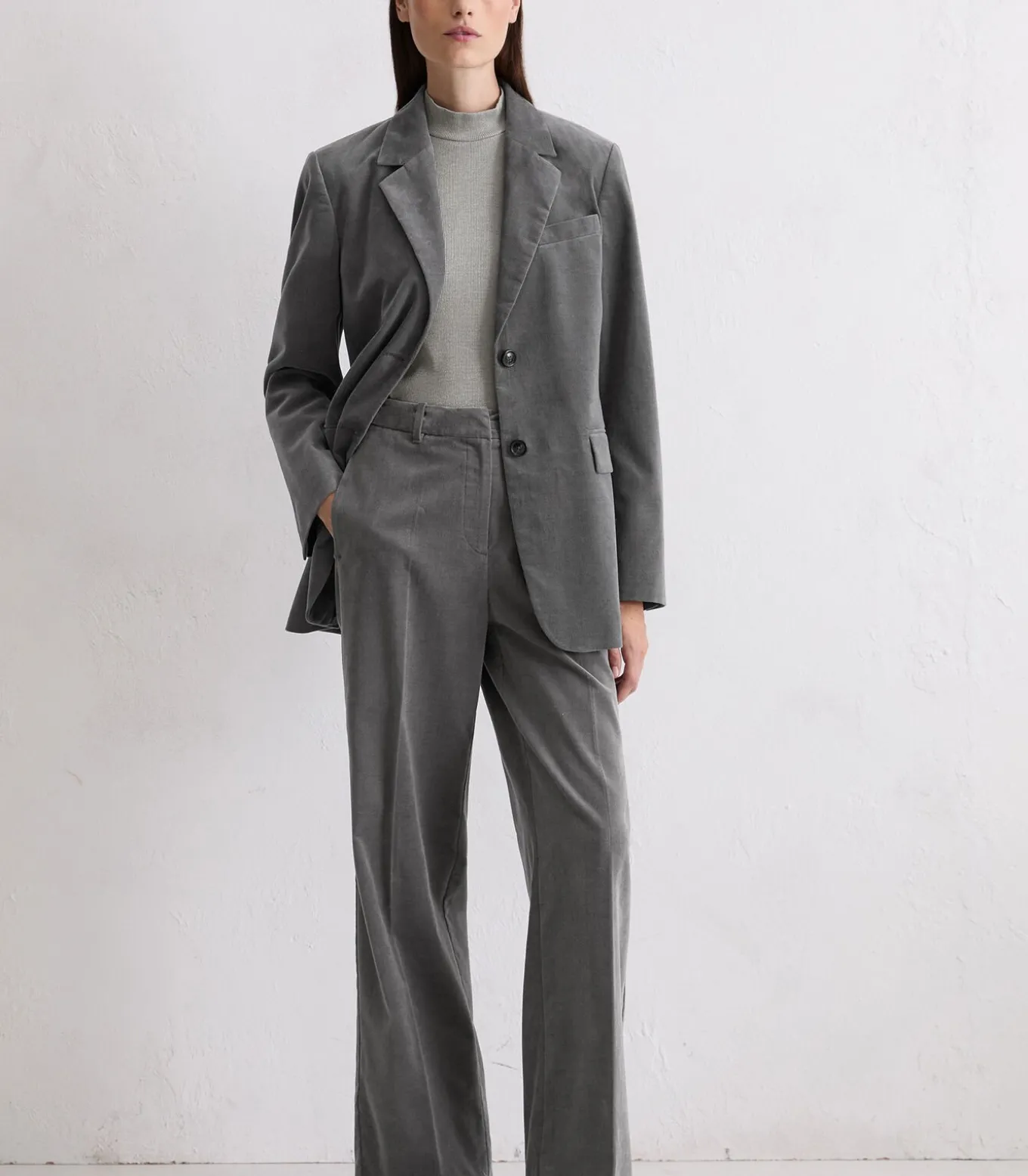 Jas en broek – fluwelen tweedelige pakken zijn nu een absolute modehit. De casual blazer is de perfecte garderobe essential voor de herfst en winter en vormt ook de beste basis voor deze trend. Naast de klassieke suitelook zijn er nog veel meer modieuze gimmicks mee mogelijk. De single–breasted blazer heeft een diepe V–hals, een revers, een borstzak en twee klepzakken en ronde stiksels. Een split middenachter en mouwsplitten met knopen zijn nog meer coole details. Onze tip: draag met de bijpassende fluwelen broek. De blazer is volledig gevoerd met viscose.