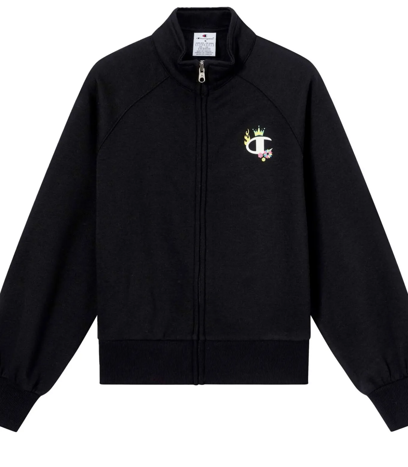 Kleur: Zwart Samenstelling: 54% katoen, 46% polyester Mouwen: Lang Pasvorm: Standaard pasvorm Sluiting: Volledige ritssluiting Details: Hoge kraag; geribbelde zoom en manchetten; kleurrijk grafisch logo en bloemendetails op de borst; comfortabel en casual design Gebruik: Ideaal voor vrije tijd en dagelijkse activiteiten, biedt comfort en een levendige stijl