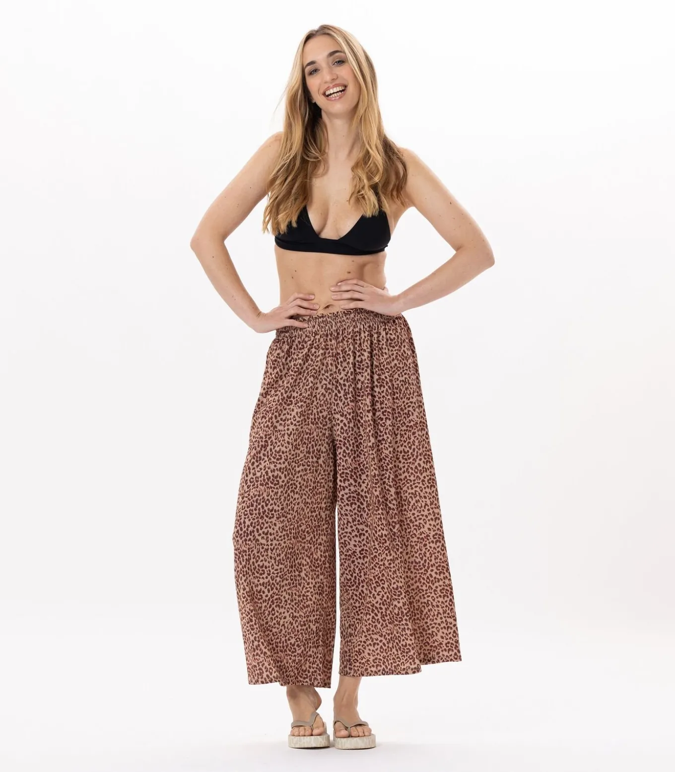 Hoe draag je de FESTIVAL 980 luipaardprintbroekVoor een opvallende outfit combineert u het met het mouwloze FESTIVAL 930 T–shirt voor een complete look.