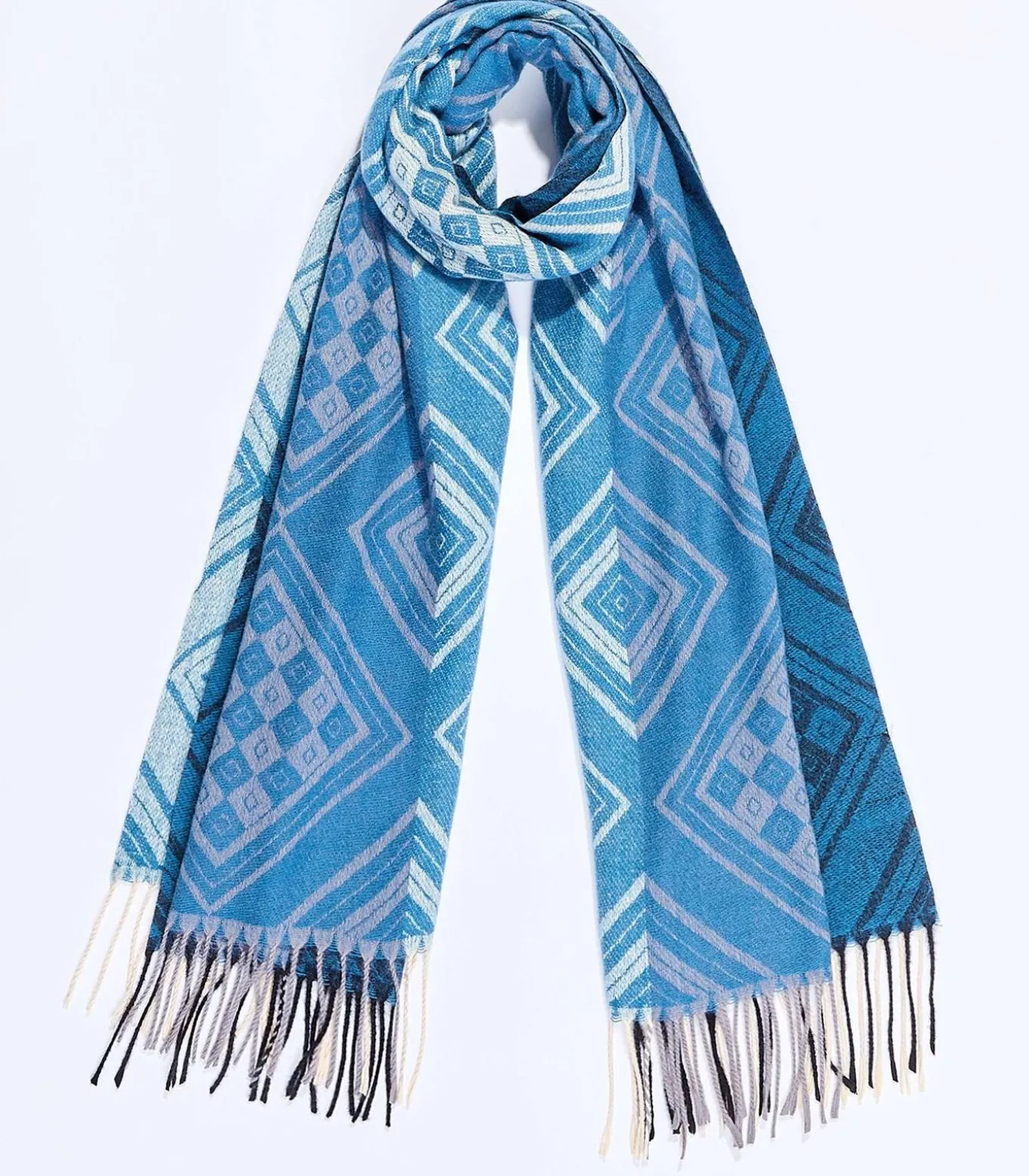 Zachte gebreide sjaal, ideaal om frisse dagen stijlvol door te komen. Het rechthoekige model en de afgewerkte gevlochten franjes geven een tijdloze charme. Een warm en kleurrijk accessoire dat uw outfits elegant aanvult. Productdetails: rechthoekige gebreide sjaal, afmetingen: 180 x 65 cm, afgewerkte gevlochten franjes.