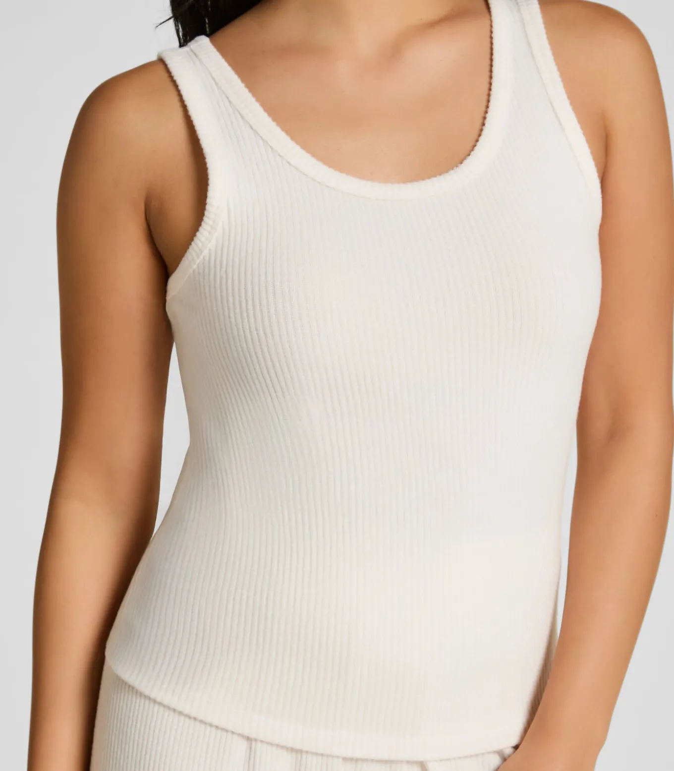 Maak kennis met de ultieme basic die allesbhlve saai is: onze singlet is ontworpen om met je mee te bewegen. Hij is gemaakt van zachte, rekbare geribde stof, vormt zich naar je lichaam houdt je de hele dag koel en comfortabel. Combineer hem met de bijpassende broek voor een complete look.