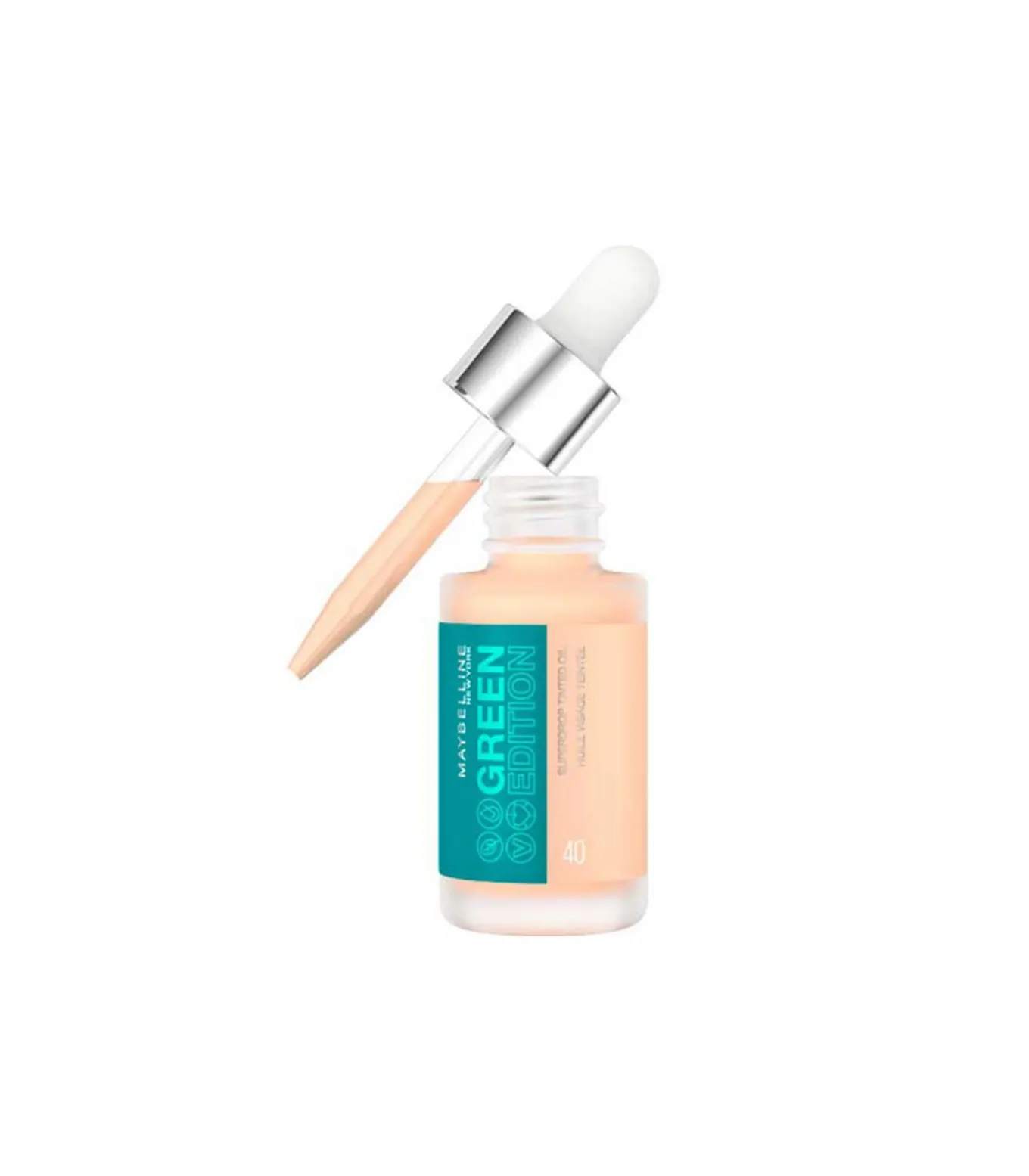Dompel jezelf onder in de ervaring van bewuste schoonheid met de getinte gezichtsolie Green Edition Superdrop Tinted Oil van Maybelline New York. Deze baanbrekende formule, bestaande uit 84% natuurlijke ingrediënten, is een alles–in–één verzorging die een frisse teint en aanpasbare dekking biedt. Verrijkt met kostbare Jojoba– en Marula–oliën is deze olie zelfs geschikt voor de meest gevoelige huid, met langdurige hydratatie. De toepassing is eenvoudig, met de mogelijkheid om je look aan te passen. Een druppel voor lichte dekking, drie druppels voor een natuurlijk effect en vijf druppels voor meer uitgesproken dekking. Pas het product aan naar jouw behoeften, van natuurlijk tot verfijnd. Bovendien is de fles milieuvriendelijk, samengesteld uit 20% gerecyclede materialen, wat bijdraagt aan het behoud van onze planeet. Het eindresultaat is een frisse, stralende en natuurlijke teint. Geniet van aanpasbare dekking die zich aanpast aan elke gelegenheid, waardoor je huid er stralend en verzorgd uitziet. Verkrijgbaar in vijf tinten is deze Green Edition Getinte Gezichtsolie de ultieme expressie van ethische schoonheid en gepersonaliseerde stijl.