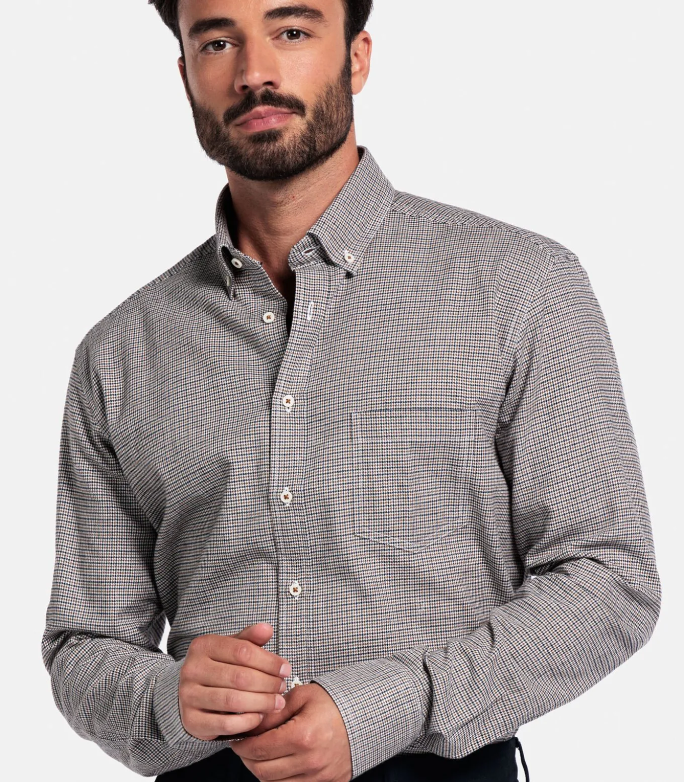 Klassiek overhemd van Giordano, gemaakt van 100% katoen met een fijn mini–houndstooth dessin. Het button–down model heeft een tijdloze uitstraling en biedt dankzij de ademende katoenkwaliteit optimaal draagcomfort. Perfect te combineren met zowel een chino als een jeans voor een verzorgde, casual look.