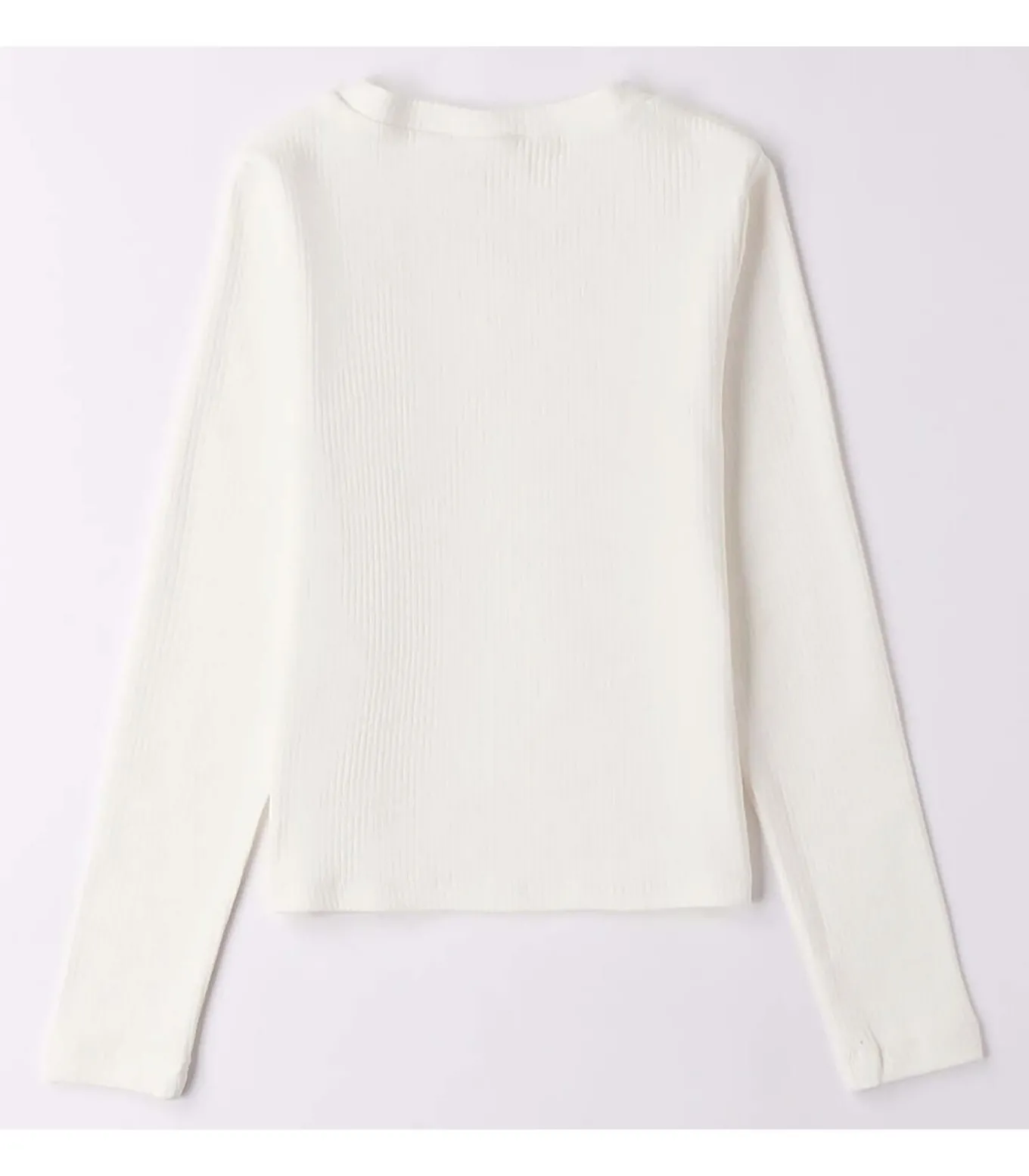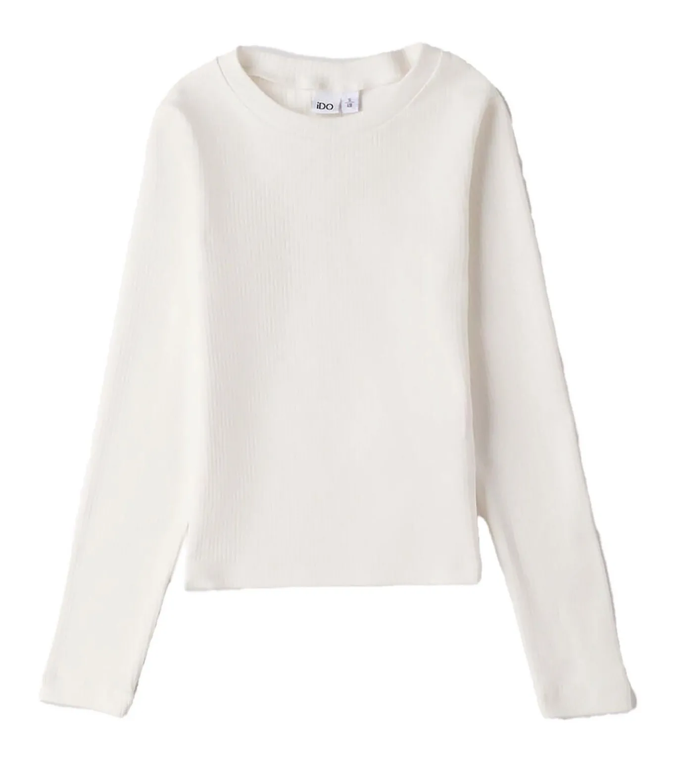 Kleur: Off White Samenstelling: 93% katoen, 7% elastaan Mouwen: Lang Halslijn: Ronde hals Details: Meisjes T–shirt van 8–16 jaar, gemaakt van stretchkatoenen ribstof, met een eenvoudig en essentieel ontwerp dat comfort en bewegingsvrijheid garandeert. Gebruik: Perfect als dagelijkse basic, om los te dragen of als laagje onder sweatshirts en jassen.