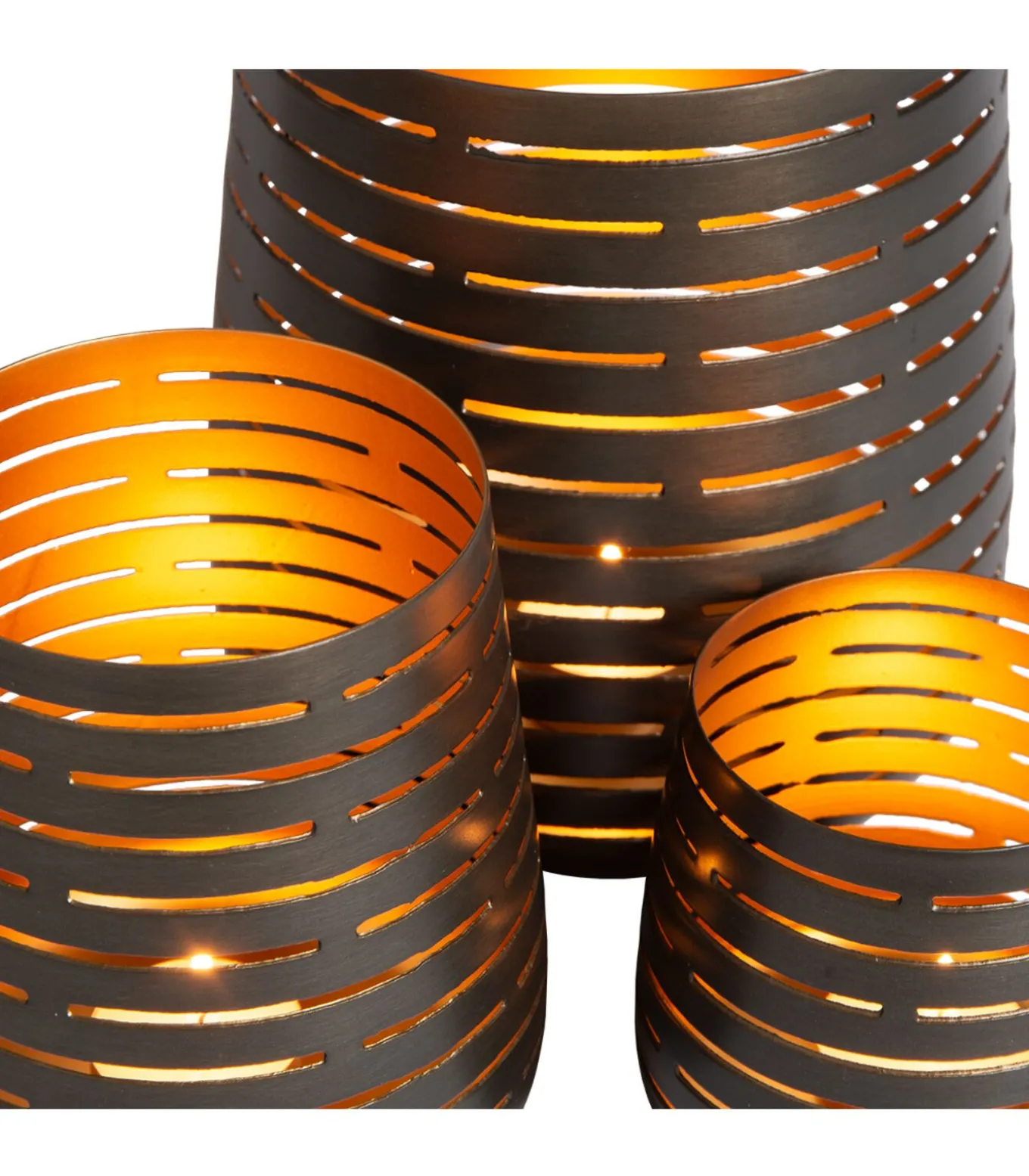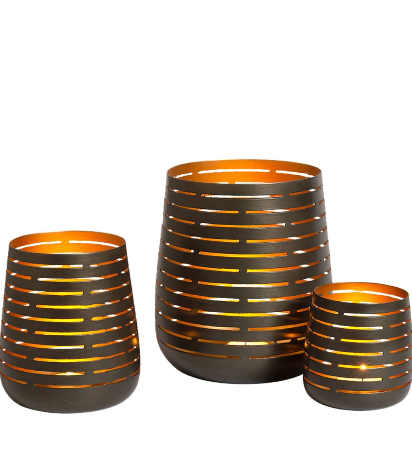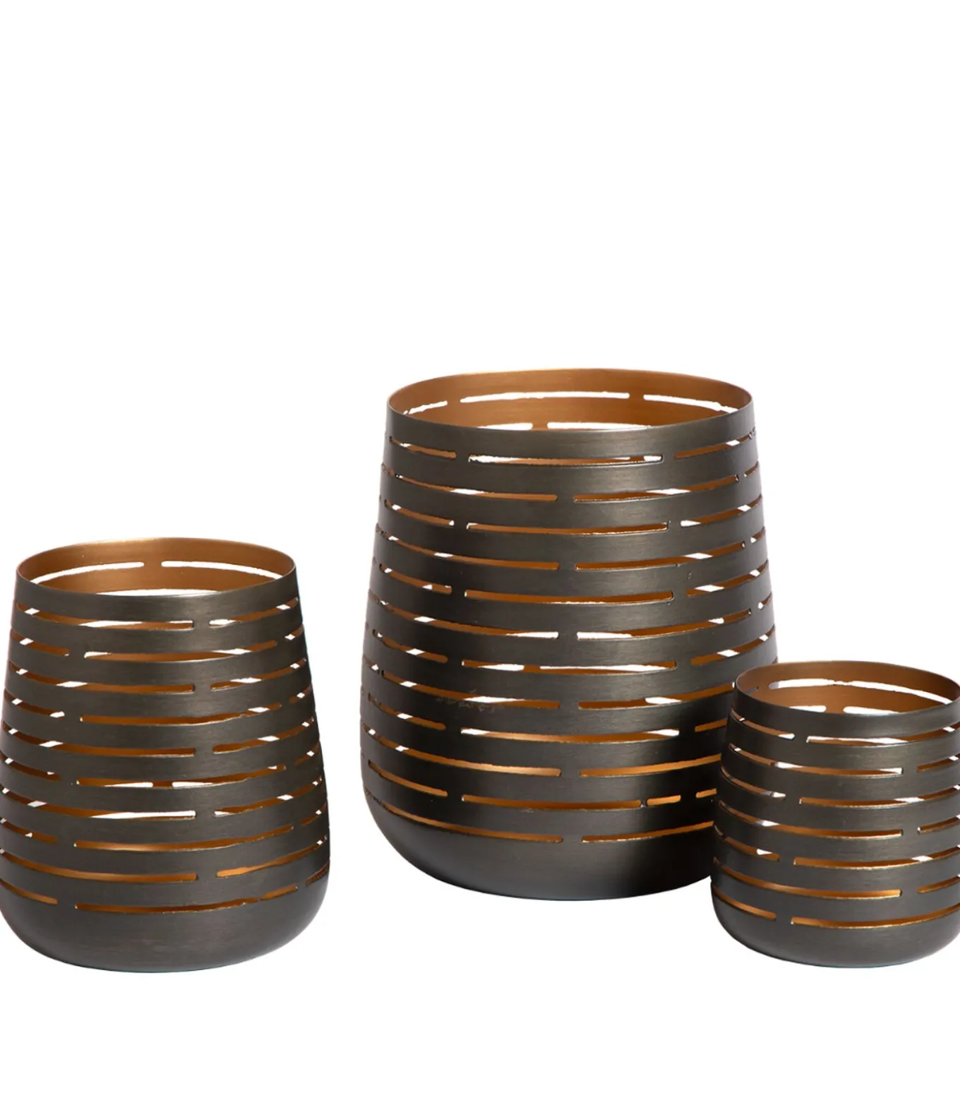 De theelichthouders Gladys (set van 3) combineren stijl en sfeer. Met een antiek zink buitenkant en een gouden binnenzijde zorgen ze voor een warme, sfeervolle lichtval. Het opengewerkte design in metaal creëert een subtiele speling van licht en schaduw, perfect voor een gezellige ambiance. Zoekwoorden : Kandelaar, Kaarshouder, Kaarsenhouder, Elegant, Design