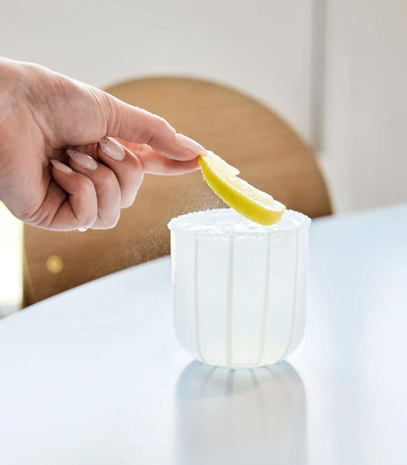 Dek de tafel met het gestreepte grijze glas uit de Mizu serie. De Mizu serie kenmerkt zich door een elegante, sierlijke en moderne expressie die goed past in de moderne woning. Het glas is ideaal voor het serveren van allerlei heerlijke drankjes. Het Mizu glas is geschikt voor zowel alledaagse als feestelijke gelegenheden op een gedekte tafel. Elk glas is uniek omdat het mondgeblazen is, en met handgemaakte details. Wordt geleverd in een set van twee. Het glas heeft een inhoud van 320 ml. Vaatwasmachinebestendig. Style no. L300545 Kleur: Grijs Kwaliteit: 100% Glas Afmetingen: Ø8 x H8,2 cm