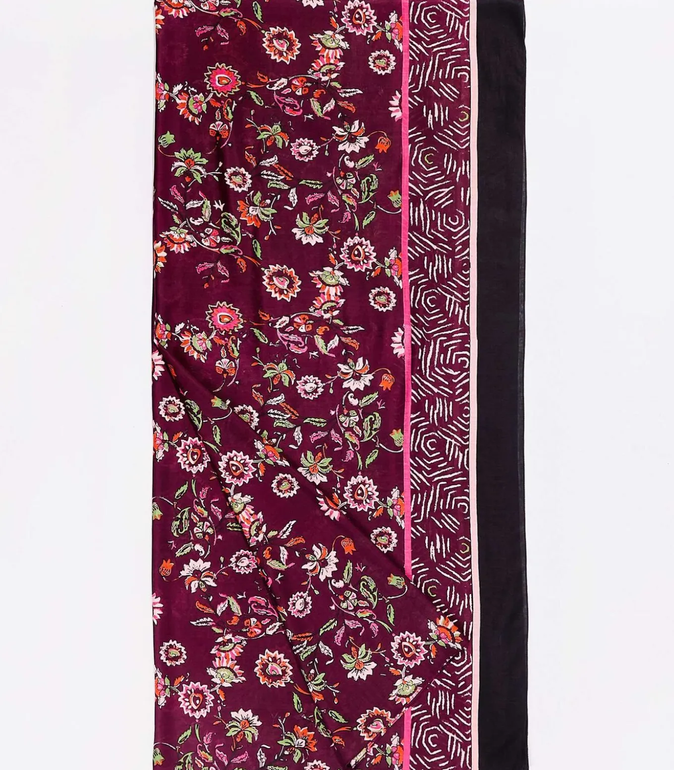 Grote rechthoekige sjaal van vloeiende en zachte LENZING™ ECOVERO™ viscose, ook origineel en kleurrijk om uw look een frisse touch te geven. Productdetails: grote vloeiende en soepele sjaal, LENZING™ ECOVERO™ viscose, afmetingen: 225 x 105 cm.