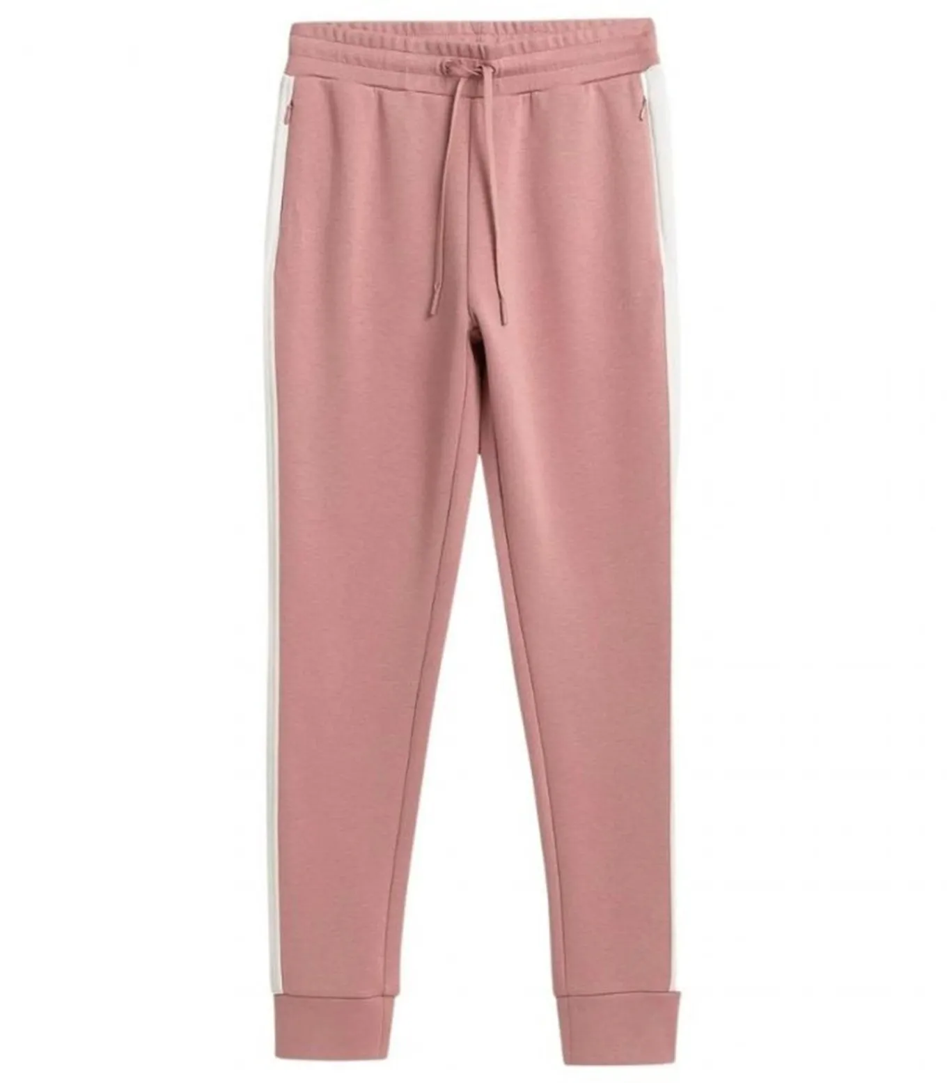 Dit is de beschrijving van het joggingbroek model 4F, H4Z21 in roze kleur. Het joggingbroek bestaat uit 75% viscose, 20% polyester en 5% elastane. Het design is uitgerust met een contraststreep en logo. De stoftechnologie van het broek is zacht. Het hebben de mogelijkheid om de poot te verstellen. Het joggingbroek heeft twee zijzakken en ritsen. Het tailleband is gemaakt van kord en elastisch.