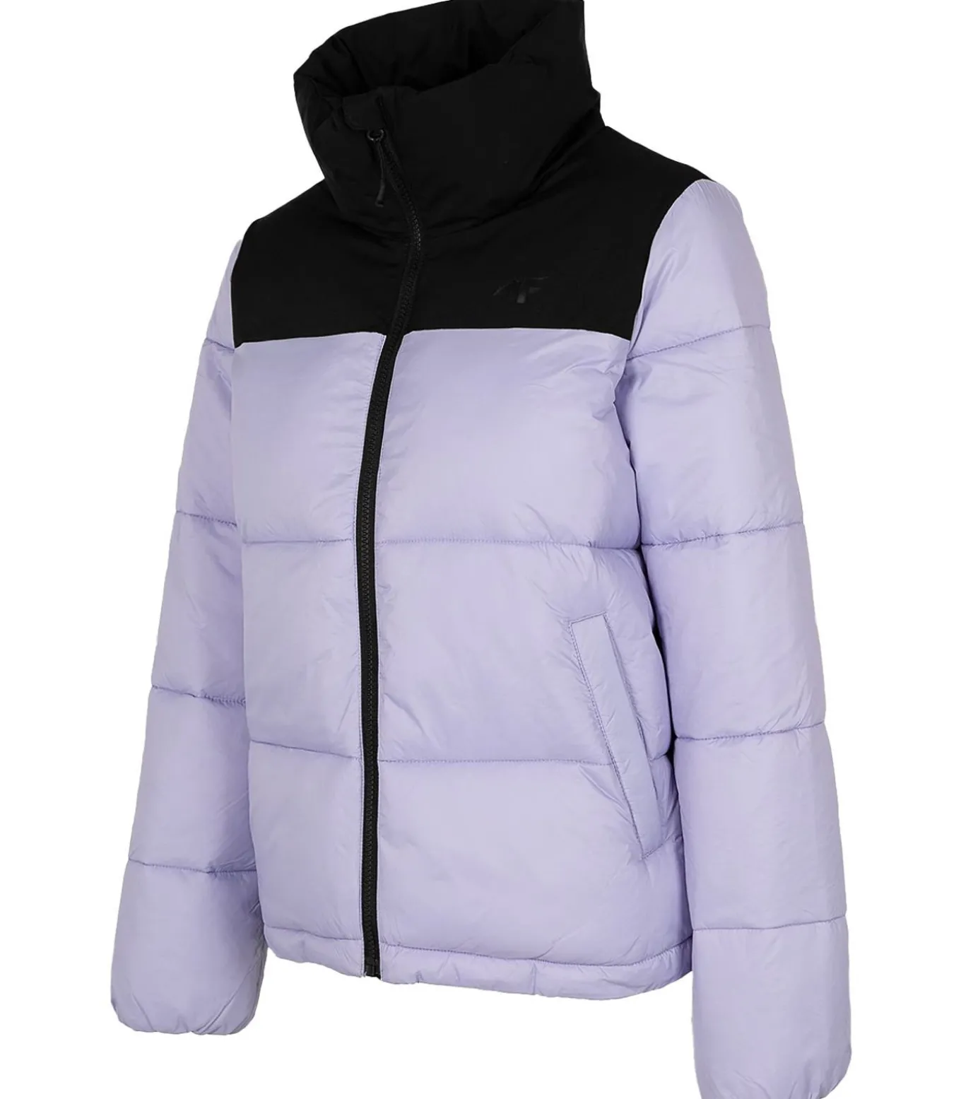 Dit is een zwarte jasje met de productcode 4F, H4Z22KUDP01451S, gemaakt van 100% polyester. Het heeft een quilted ontwerp en bevat synthetisch donsdraad in het interieur. Deze jas heeft waterafstotend stoftechnologie en beschikt over een kinbeschermer en stormflap voor een optimale bescherming tegen regen. De manchetten zijn elastisch, waardoor ze comfortabel aanpassen aan uw armen. Het hebben langere mouwen en een staande kraaglijn. De jas heeft twee zijzakken en open zakken. Het is vastgemaakt met volle ritssluiting en voorzien van trekkoorden en elastische delen. De maten zijn 36, 37,5, 40 en 42,5 centimeter.