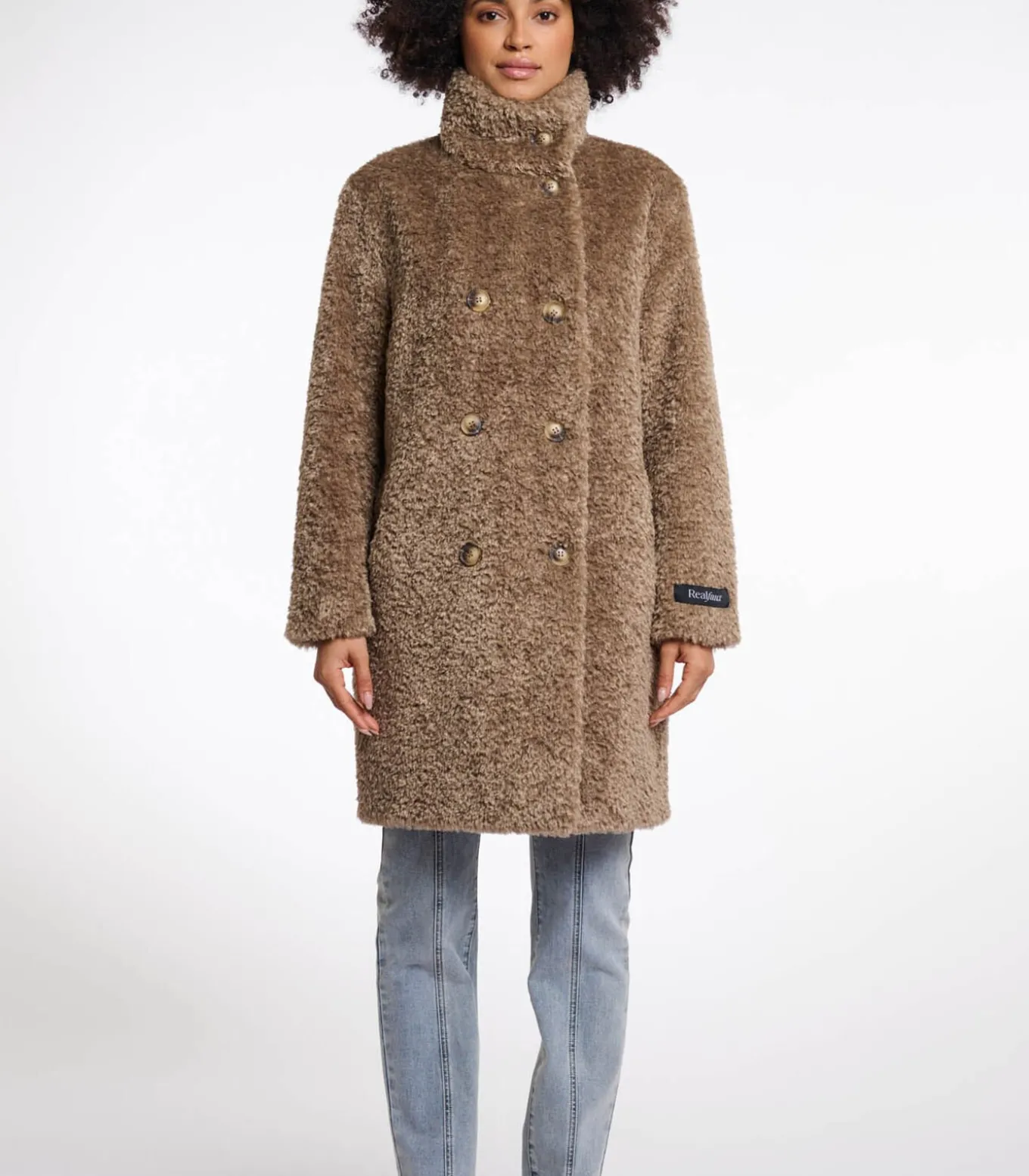 Deze superzachte jas van imitatiebont is de perfecte manier om de hele winter warm en knus te blijven. Met zijn double–breasted knoopsluiting, grote kraag en handige steekzakken is deze damesjas zowel stijlvol als praktisch. Waarom trakteer je jezelf niet op een beetje luxe en bundel je jezelf in deze prachtige jas?