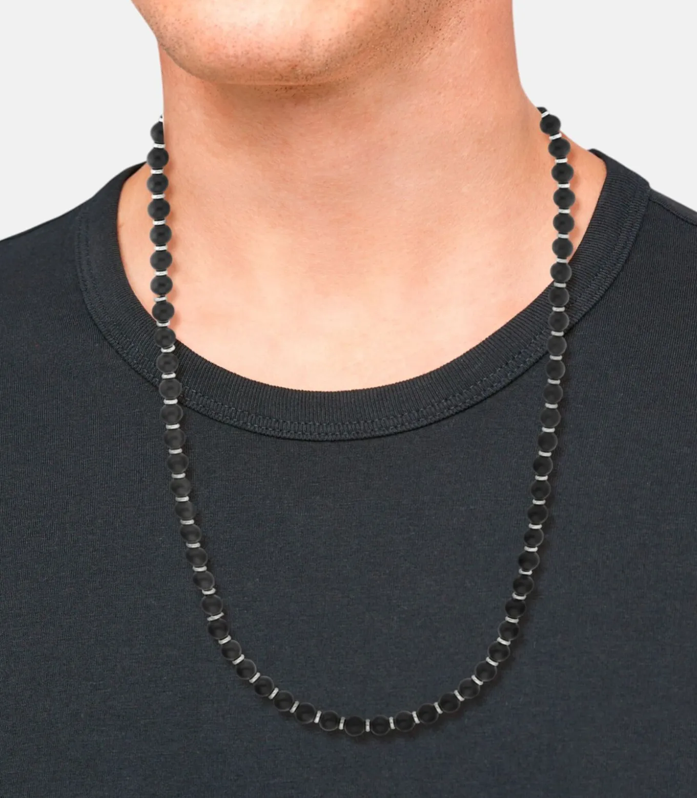 Kralenketting voor heren van s.Oliver. De herenketting is gemaakt van hoogwaardig roestvrij staal en omringd door agaatstenen. De lengte van het collier is individueel verstelbaar, 50+5 cm, zodat je het sieraad perfect op jou kunt afstemmen. Voorzien van een handige karabijnsluiting voor gemakkelijk om– en afdoen. De ketting wordt geleverd in een bijpassend doosje, ideaal om de sieradencreatie in op te bergen en cadeau te geven. Combineer de ketting met de bijpassende armband van s.Oliver.