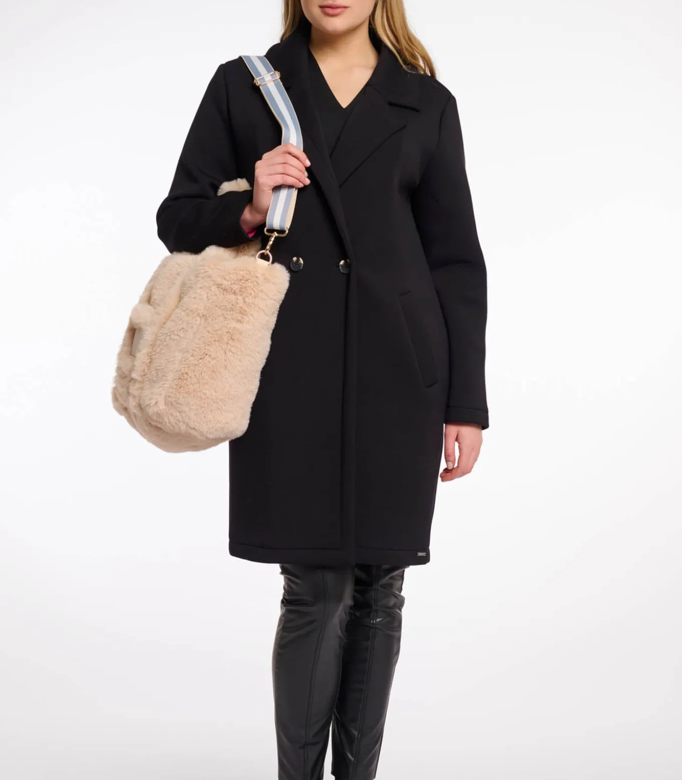 Deze grote schoudertas heeft een modern ontwerp van imitatiebont. De tas heeft een afneembare riem, een subtiel maar opvallend logodetail en een veilige ritssluiting om je spullen veilig te houden, terwijl een binnenvak je helpt om onderweg georganiseerd te blijven.