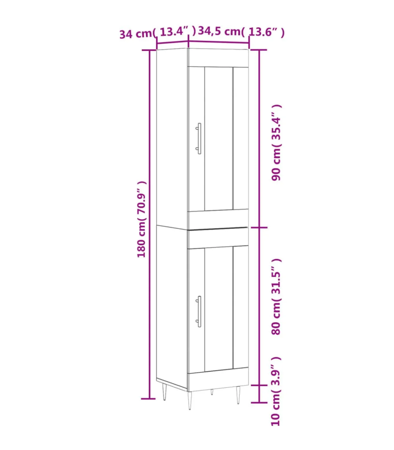 Afmetingen dressoir: 34,5 x 34 x 90 cm (B x D x H)