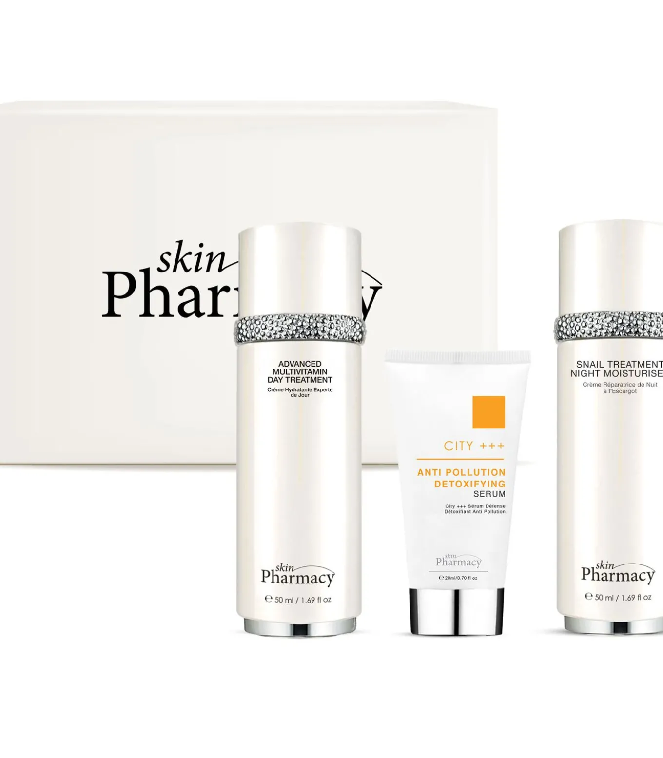 Skin Revival Verzorgingsset – Slakkencrème + Anti–Pollutie Serum + Multivitamine DagbehandelingDeze driefasige routine is ontworpen om de huid te beschermen, herstellen en verjongen – van ’s ochtends vroeg tot diep in de nacht. Ideaal voor de vermoeide, doffe of gevoelige huid die dagelijks wordt blootgesteld aan vervuiling.De Snail Treatment Nachtcrème revitaliseert de huid tijdens de slaap:Slakkensecretie: beschermt tegen vroegtijdige veroudering en werkt ontstekingsremmendCreatine & Vitamine E: hydrateren, beschermen en herstellenGransil: vervaagt fijne lijntjes en zorgt voor een zachte, gladde afwerkingHet Anti–Pollutie Detox Serum biedt bescherming tegen vervuiling en blauw licht:Marrubio–extract & Biosaccharide Gum–4: vormen een verdedigingslaagShea Seedcake Extract: voorkomt dat schadelijke deeltjes zich aan de huid hechtenDe Multivitamine Dagcrème voedt intens met een mix van:Vitamines C, E, B5 & actieve stoffen die hydrateren, verhelderen en beschermenVoor een frisse, jeugdige en stralende huid – dag en nacht beschermd en verzorgd.