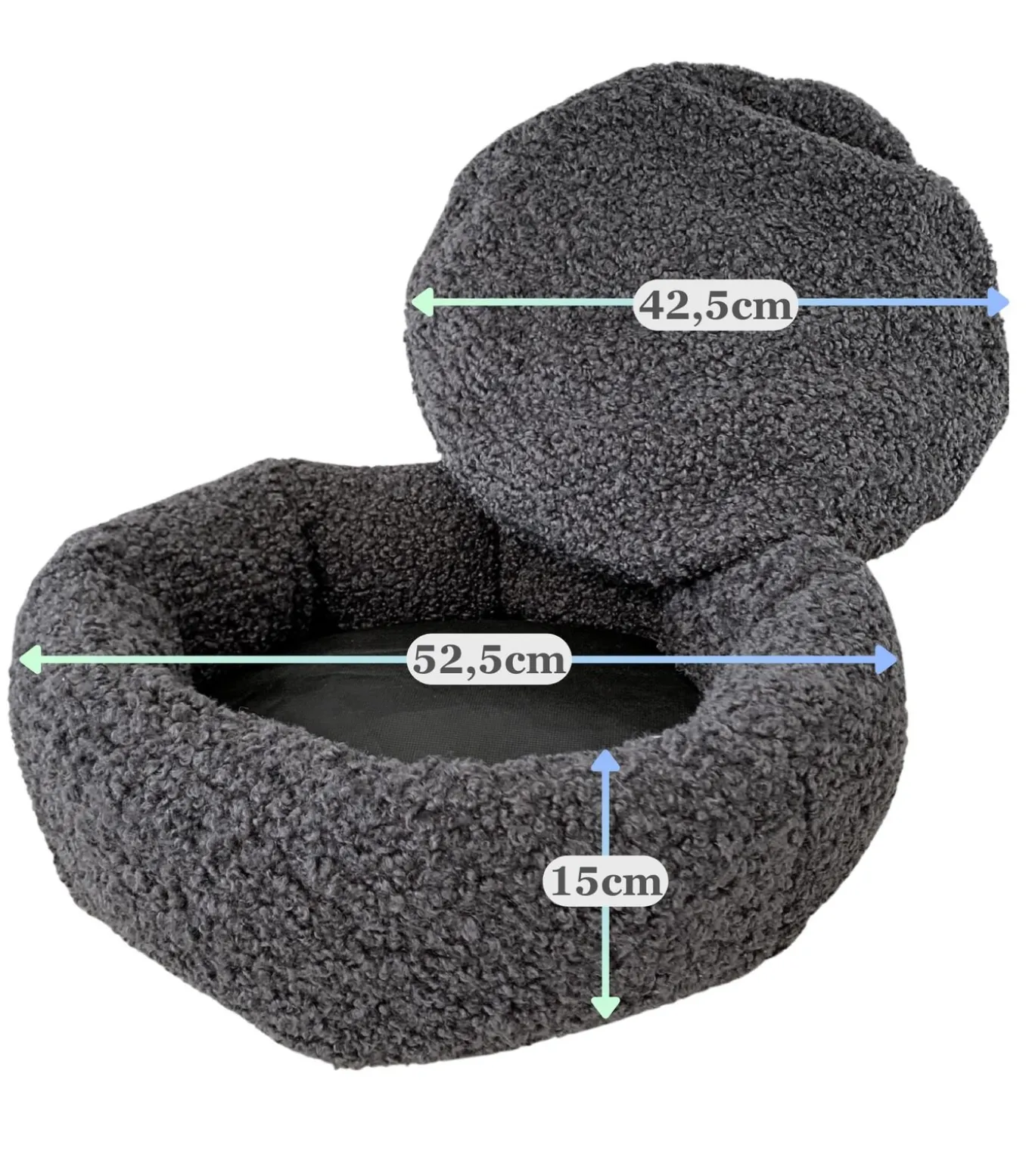 Huisdierenbed SkyeProductbeschrijving:Het Skye huisdierenbed in elegant donkergrijs (maat S) is speciaal ontworpen voor katten en kleine honden die behoefte hebben aan comfort en ondersteuning. De ronde, ergonomische vorm en de vulling met memory foam–effect zorgen voor een zachte, drukverlagende ligplek – ideaal voor gevoelige of oudere huisdieren.Het omkeerbare binnenkussen biedt twee texturen: een zijde met zacht pluche voor warmte en geborgenheid, en een ademende, gladde zijde voor koelere rustmomenten. Alle onderdelen, inclusief de hoes en het kussen, zijn afneembaar en wasbaar in de wasmachine op 30 °C, waardoor schoonmaken eenvoudig en hygiënisch blijft.Met zijn compacte formaat en neutrale kleur past het Skye bed perfect in moderne interieurs – of je het nu in de woonkamer, slaapkamer of huisdierhoek plaatst.Of je nu zoekt naar een wasbaar kattenkussen, een comfortabel hondenbed of een stijlvolle rustplek in donkergrijs – Skye biedt het allemaal.Productspecificaties:Kleur: DonkergrijsAfmeting: 50 cm diameter (ligvlak 40 cm)Materiaal (hoes): 100% Polyester (PES)