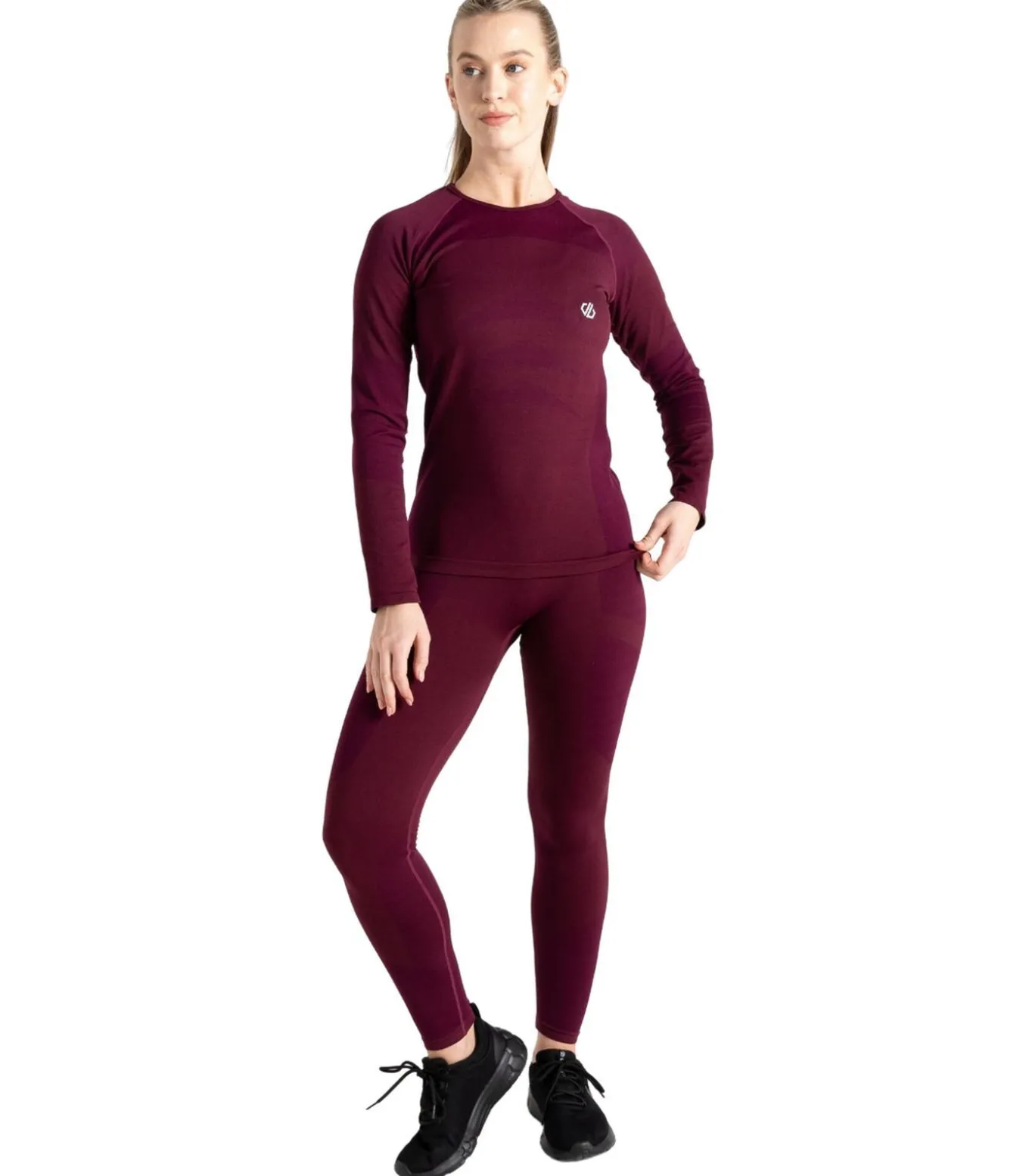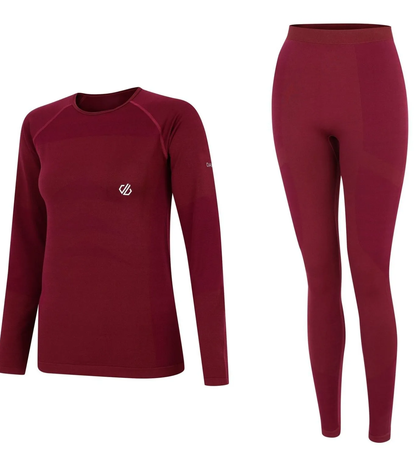 Dare 2B IN THE ZONE II basislaag Paars is een zwemtenuitrusting bestaande uit een broekje en een topje met performance stof en zacht aanraking, gekenmerkt door een eenvoudig ontwerp met het merklogo. Deze kleding heeft een crew neck hals, langarmen, pull–on beslAG, anti–bacteriële, ademend, chemievelvrij, duurzame, vochtafvoerende, geurcontrole en sneldrogende technologieën. Het product is ook voorzien van SeamSmart technologie en ventilatie. Deze naadloos gemaakte kleding biedt onbeperkte bewegingsvrijheid en heeft een pasvorm gebaseerd op de lichaamsvorm. Ook beschikt het product over elastieke waistline.