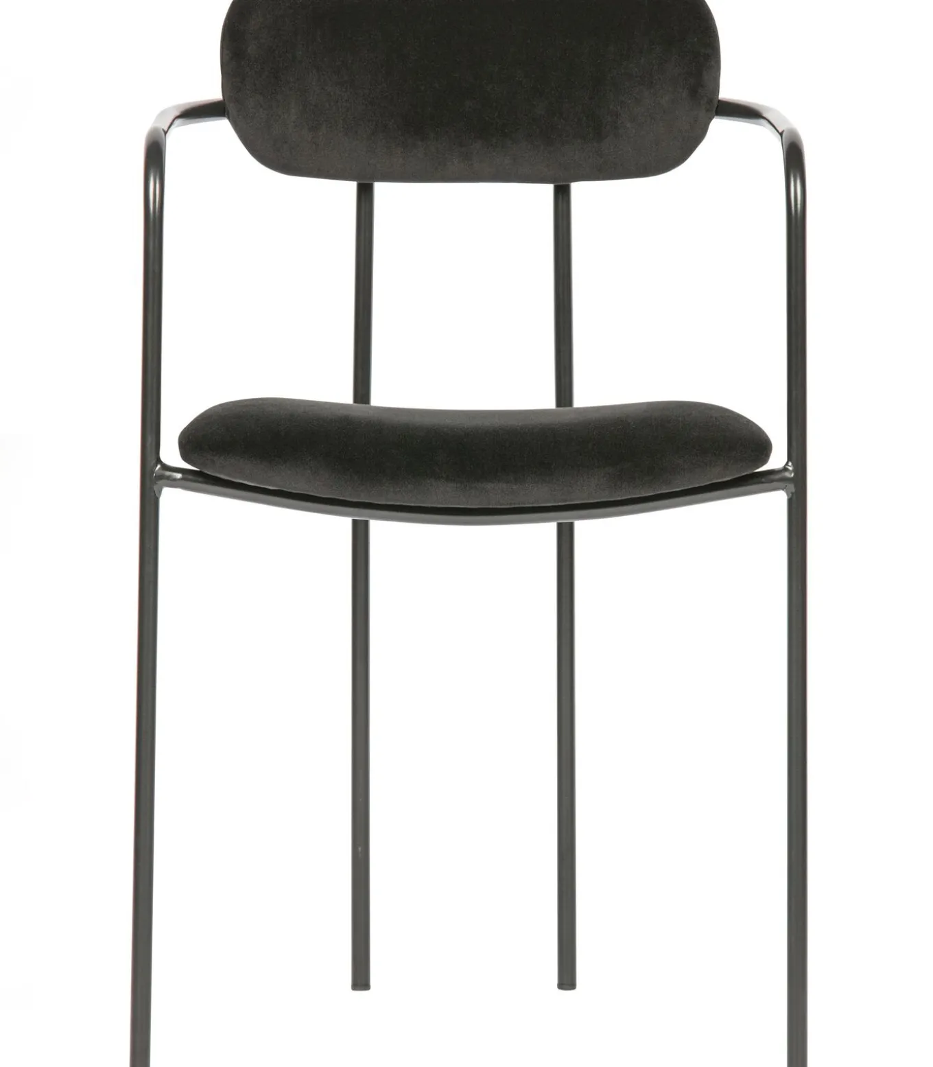 Het frame is vervaardigd uit multiplex met een comfortabele schuimlaag en bekleed met zwarte velvet (100% polyester). Het onderstel bestaat uit zwarte, ijzeren poten voor een stabiele basis.