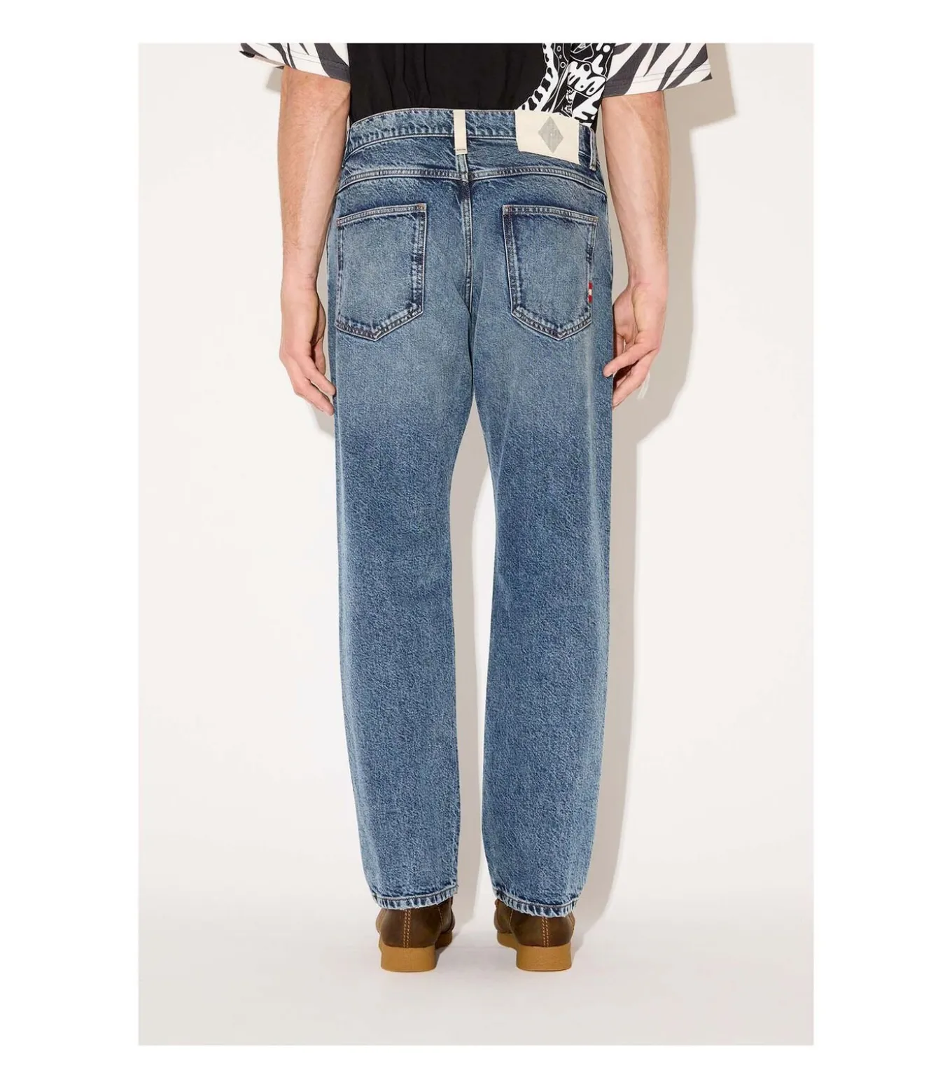 Kleur: Denim Samenstelling: 100% Katoen Pasvorm: Losvallend Sluiting: Logoknoop en rits Details: Medium wash marble stone denim jeans met lichte kreukeffecten, used–effect scheuren, label en logolusje op de achterkant. Voor– en achterzakken met contrasterend borduursel. Gebruik: Perfect voor een relaxte, urban look, ontworpen voor wie houdt van een vintage en comfortabele touch in zijn dagelijkse outfit.
