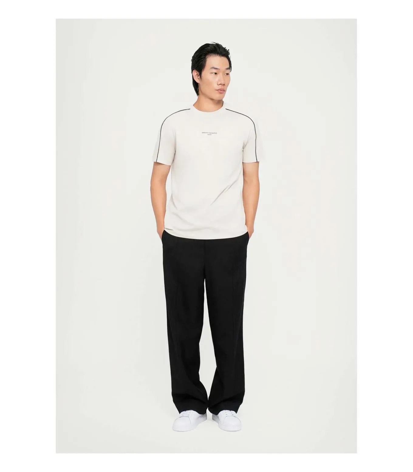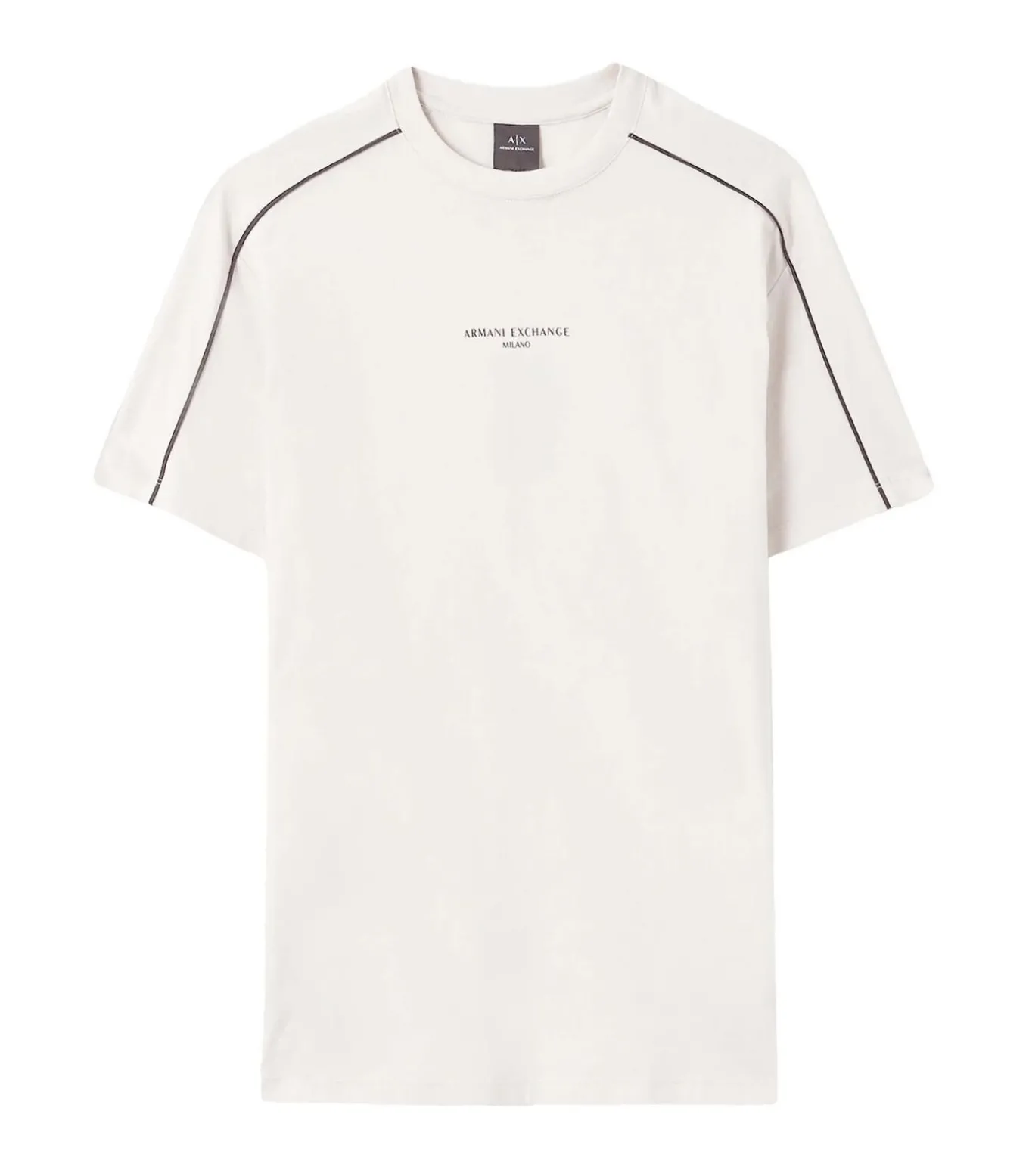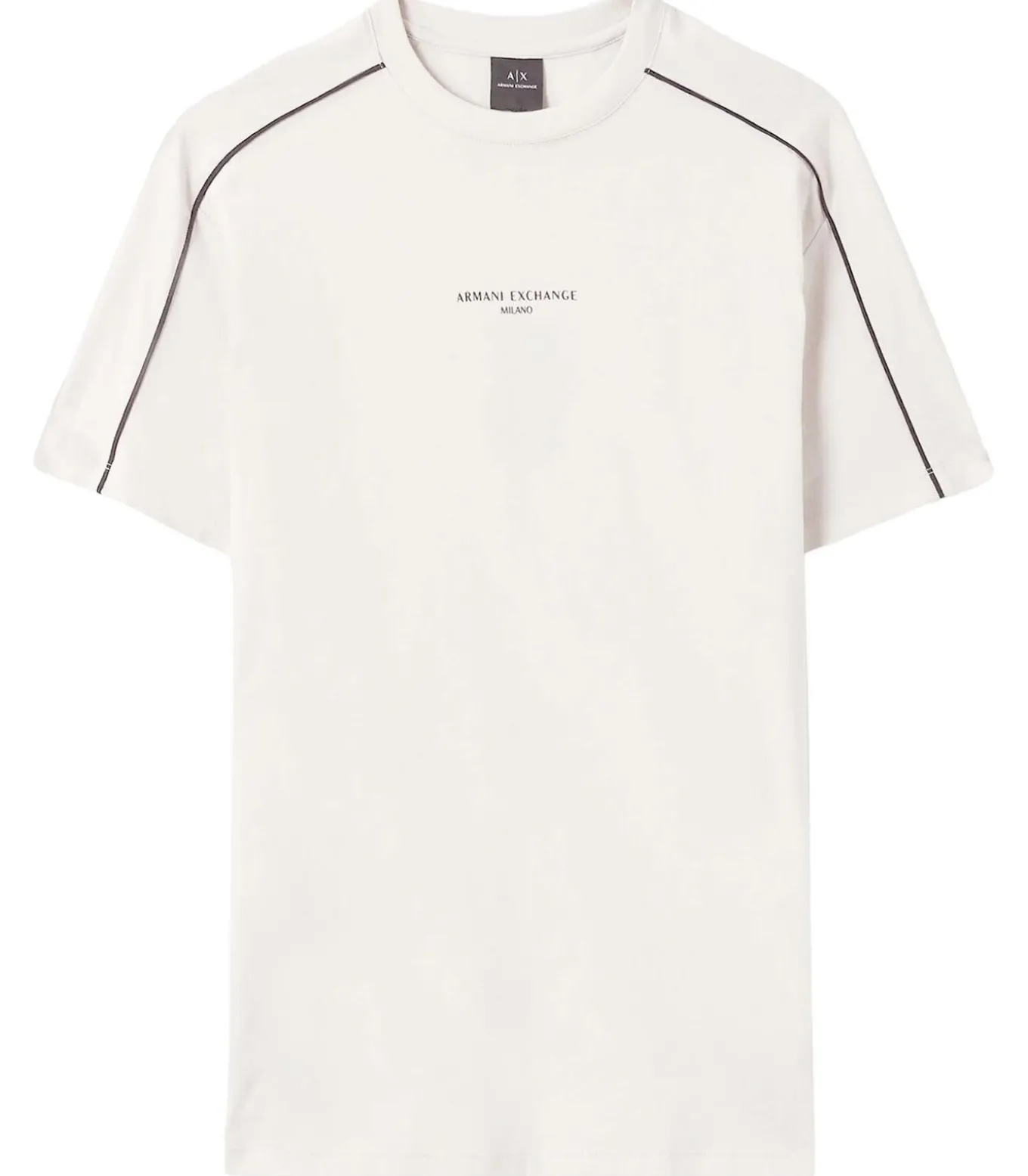 Kleur: Wind Chime Samenstelling: 100% katoen Mouwen: kort Halslijn: ronde hals Details: jerseystof, contrasterende profielen op de schouders, logo op de borst gedrukt Gebruik: essentieel en veelzijdig heren–T–shirt, ideaal voor casual dagelijkse looks met een moderne touch van Armani Exchange