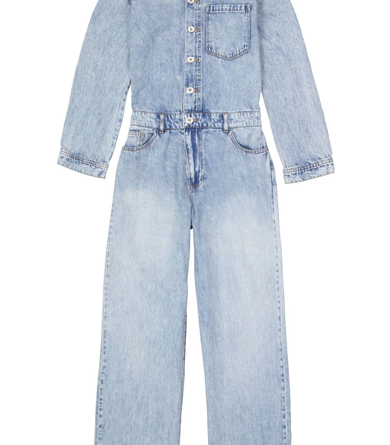 Jumpsuit met denimlook. Ideaal voor een all denim look! Deze jumpsuit heeft een knoopsluiting, een borstzak en een regular fit. Dit item is gemaakt van 100% katoen.Better Cotton is een initiatief dat zich wereldwijd inzet voor betere omstandigheden in de katoenindustrie.