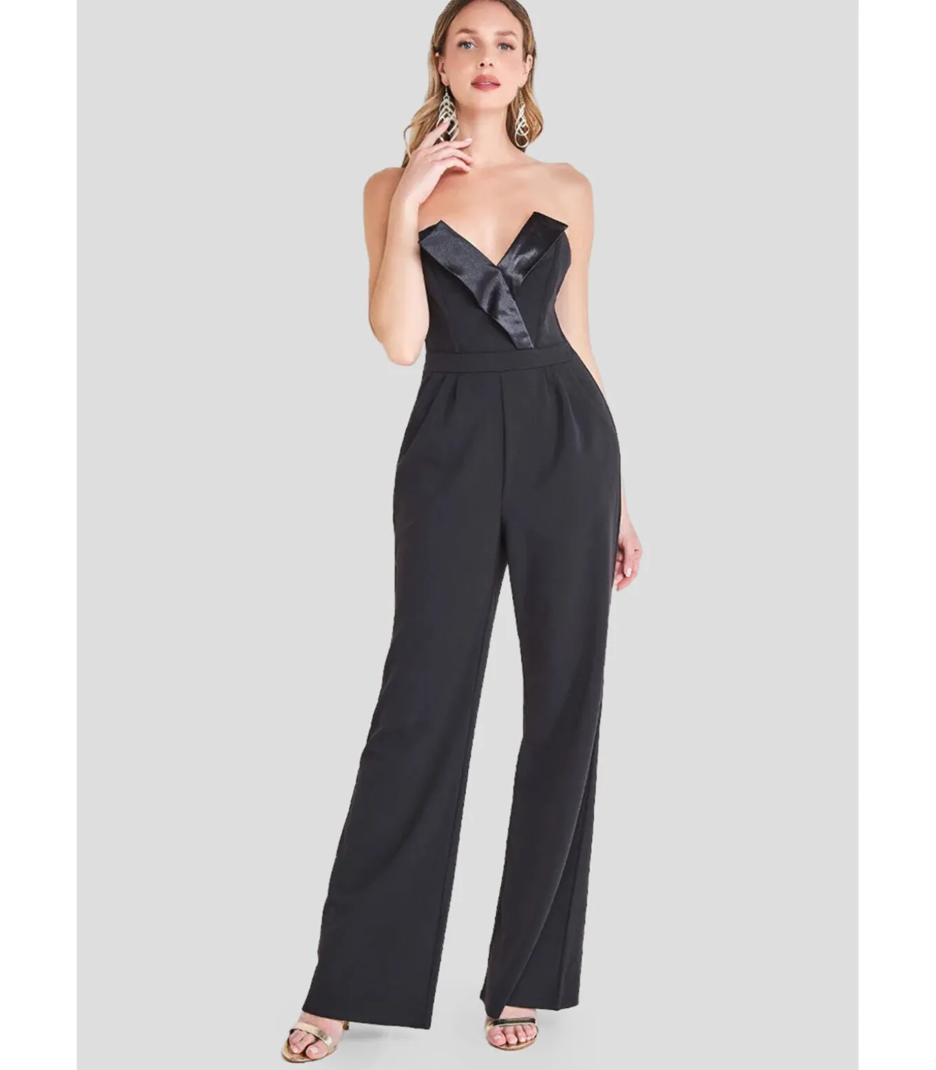 Deze prachtige jumpsuit met satijnen plooikraag is de perfecte must–have voor je garderobe dit seizoen. Het is niet alleen ideaal voor de feestdagen, maar kan ook worden gecombineerd met hoge hakken en accessoires om in een handomdraai een elegante avondlook te creëren. Het model is gemaakt van een stretchy scuba crêpe materiaal en heeft steekzakken, een omgeslagen satijnen kraag en een open rug. Deze zwarte jumpsuit is een echte basic voor elke garderobe. Het is stijlvol, modern en uiterst comfortabel. De elegante satijnen kraag geeft de look een geraffineerde touch en maakt het ideaal voor een breed scala aan gelegenheden – diners, date nights, kerstfeesten, oud en nieuw, verjaardagen of als gast op bruiloften. Een echte highlight voor het seizoen! Combineer het met hakken en een clutch voor een allround harmonieuze outfit.