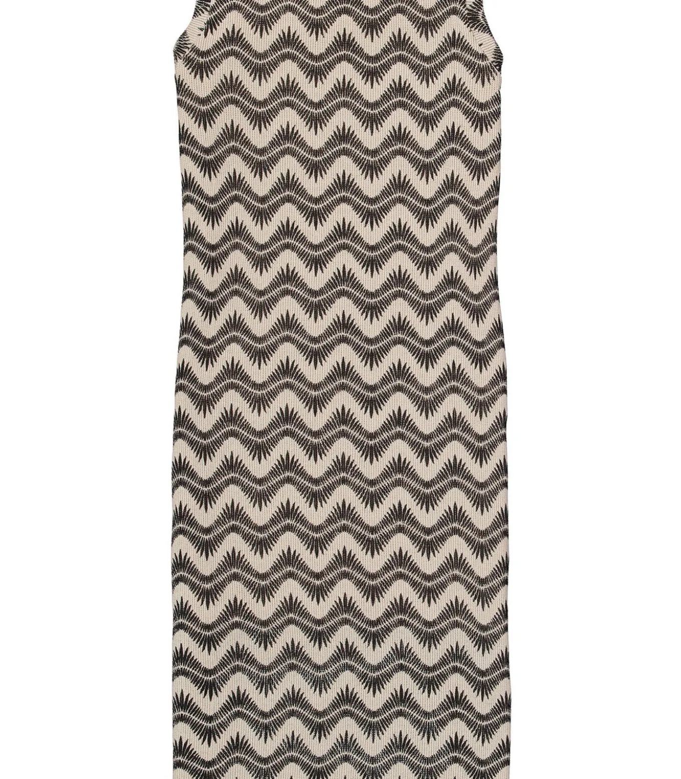 Midi jurk met allover print. Een trendy item, ideaal voor dit seizoen! Deze mouwloze jurk heeft een ronde hals, een binnenjurk en een regular fit. Dit item is gemaakt van 85% viscose, 11% polyester en 4% elastaan.