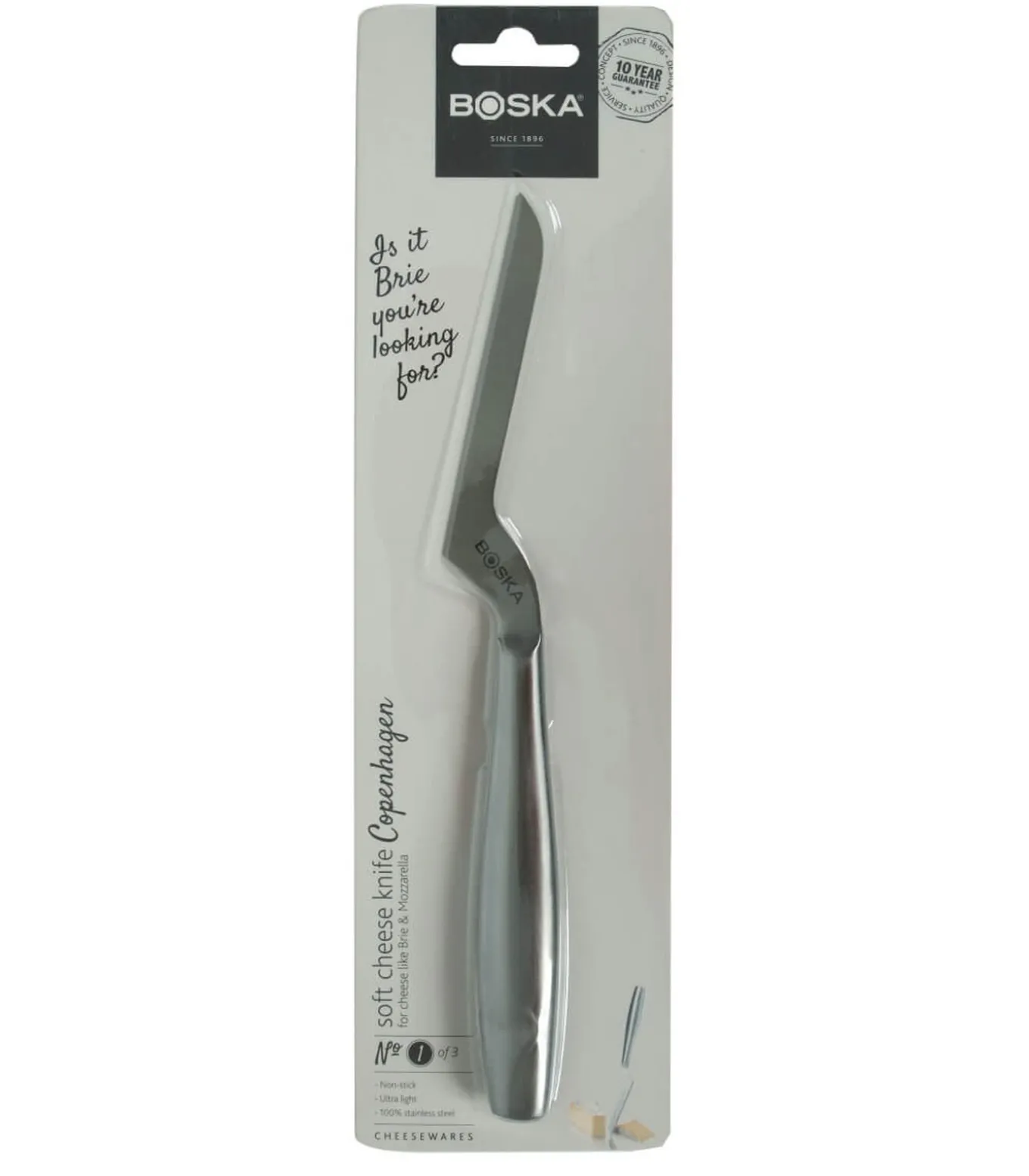 Het Boska Kaasmes Zachte Kaas Copenhagen is vaatwasserbestendig, koelkastbestendig en u krijgt tien jaar garantie. Het mes is geschikt voor zachte en half harde kaas. Het mes is gemaakt van hoogwaardig RVS. Het mes is daarnaast heel dun en non–stick, zodat de kaas niet blijft plakken.