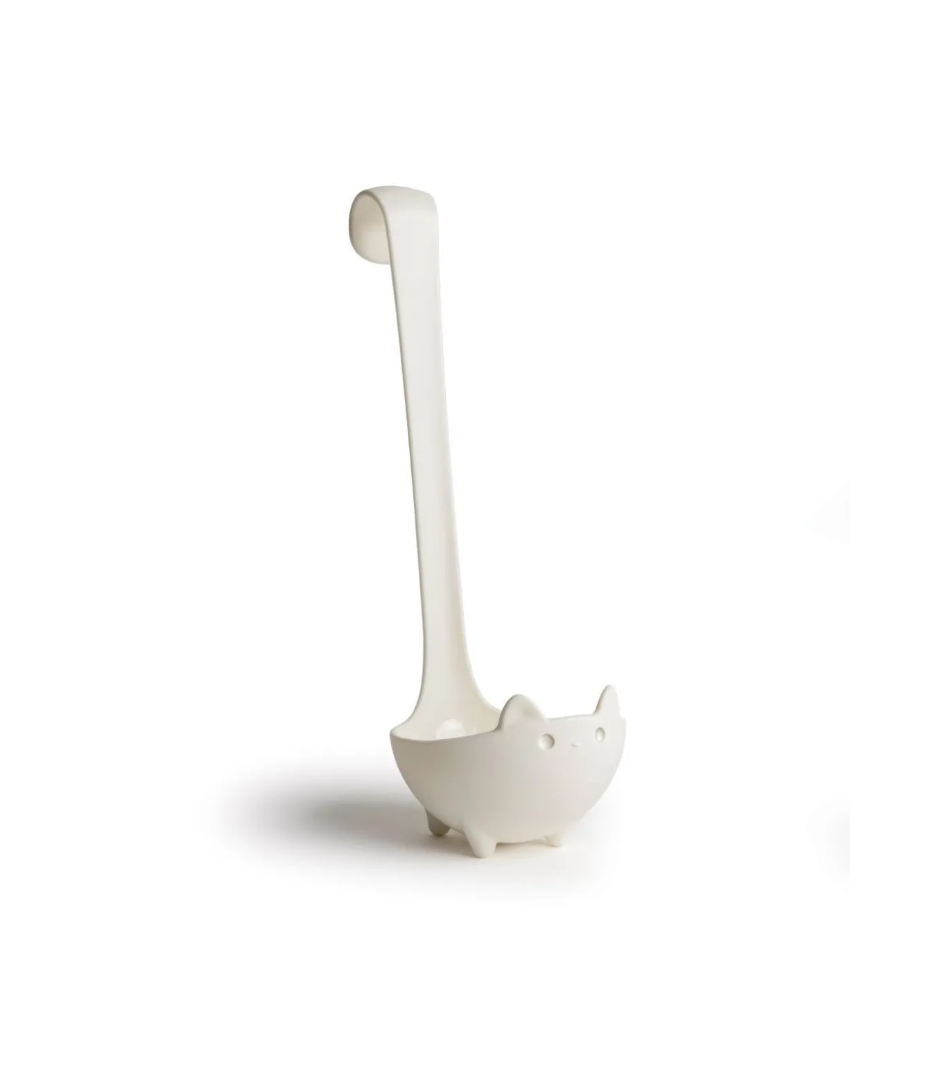 De elegante witte Katie opscheplepel van Ototo voegt een speels accent toe aan je keuken, terwijl hij ook nog eens heel praktisch is. Dankzij het comfortabele handvat ligt Katie perfect in de hand, of je nu schept of roert. Na gebruik kun je Katie eenvoudig in de vaatwasser plaatsen voor een snelle reiniging. En als je haar even niet nodig hebt, hang je haar gewoon op aan de staart – een slimme en stijlvolle manier om je keukenaccessoires te bewaren.
