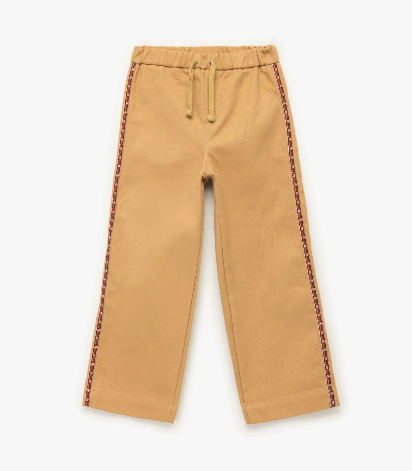 Deze comfortabele broek is ideaal voor dagelijks gebruik en speciale gelegenheden. Gemaakt van 100% katoen, biedt het een soepel en ademend gevoel. De hoge taille en losse pasvorm maken het gemakkelijk voor kinderen om vrij te bewegen. Het heeft schattige zijbanddetails en koord bij de taille voor een betere pasvorm. Perfect te combineren met een vrolijke top voor een complete look.