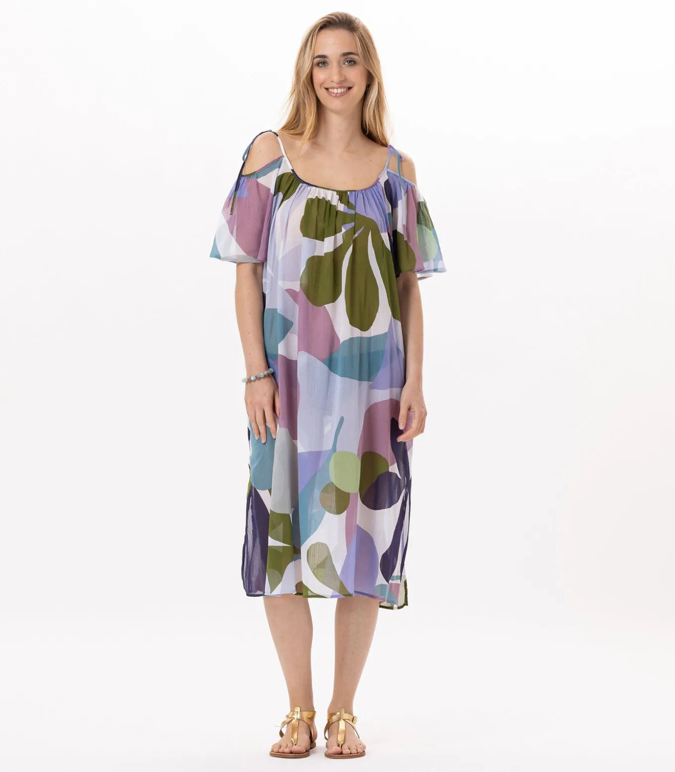 De subtiel blote schouders voegen een vleugje vrouwelijkheid toe en zorgen voor een elegant en luchtig silhouet, ideaal voor uw momenten van ontspanning in de zon.