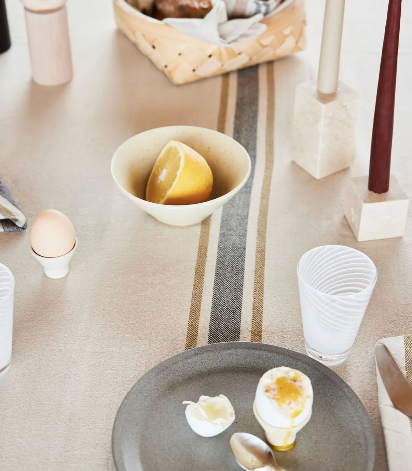Het Linu tafelkleed is een hoogtepunt uit de Linu serie, gemaakt van biologisch katoen. Dit tafelkleed, versierd met visgraatmotief en een eenvoudig ontwerp met een variatie van verschillende strepen, is verkrijgbaar in twee maten voor een veelzijdige styling. Mix en match met de Linu Servetten om een persoonlijke en elegante eetsetting te creëren.