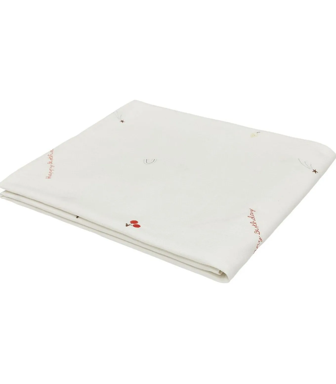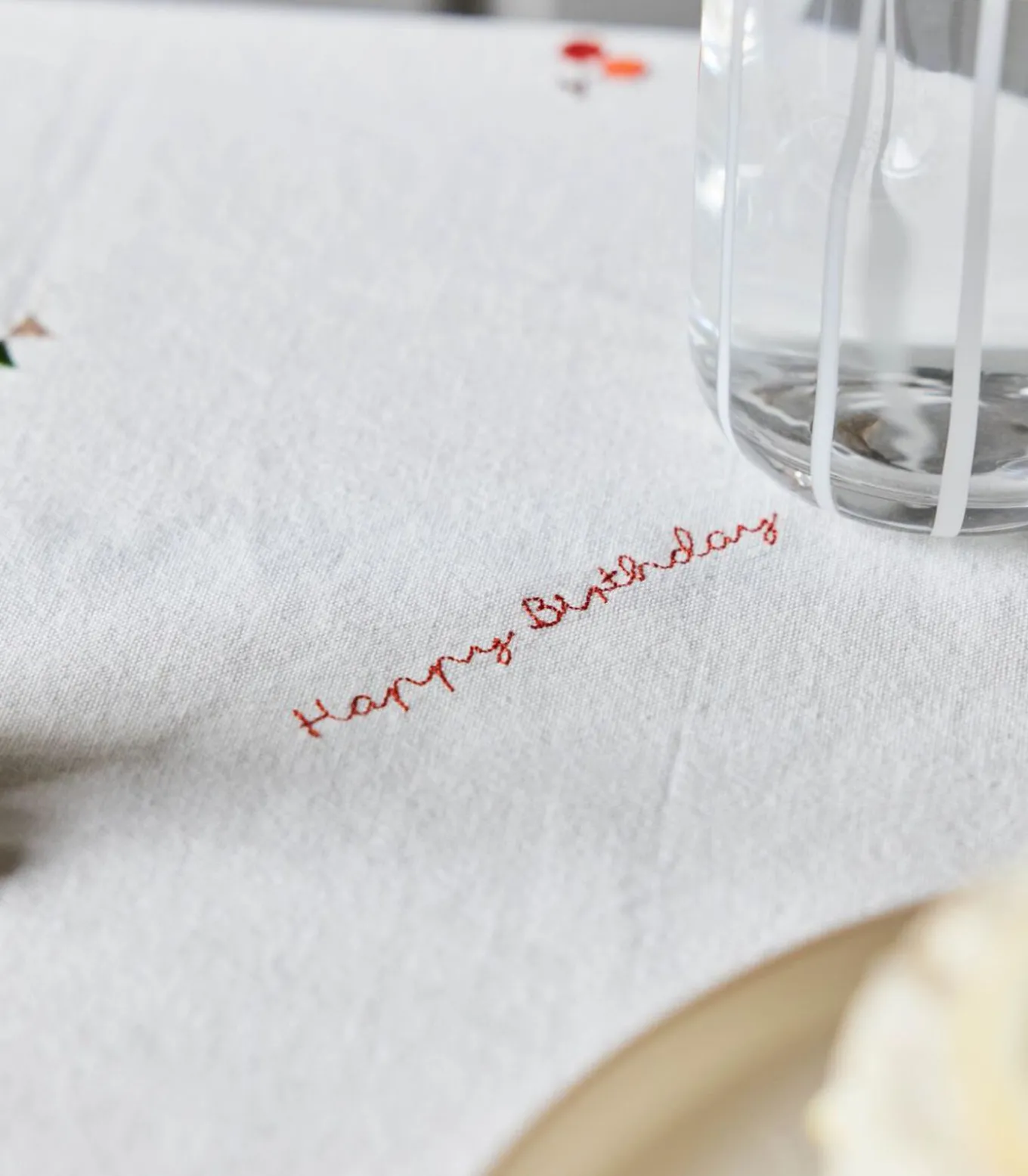 Het Verjaardagstafelkleed is perfect voor feesten en andere feestelijke gelegenheden en geeft een speels en levendig tintje aan je bijeenkomsten. Het is ontworpen om jaar na jaar gebruikt te worden, waardoor het een gekoesterde traditie wordt. Dit tafelkleed met feestelijke illustraties is gemaakt van 100% OEKO–TEX katoen. Onderhoudsinstructies: machinewas op 60 graden, voorzichtig uitrekken als het nat is. Het tafelkleed kan aan de achterkant licht gestreken worden op lage temperatuur – eventueel met een vochtige theedoek en stoom om kreuken glad te strijken. Minimaal 3% krimp.