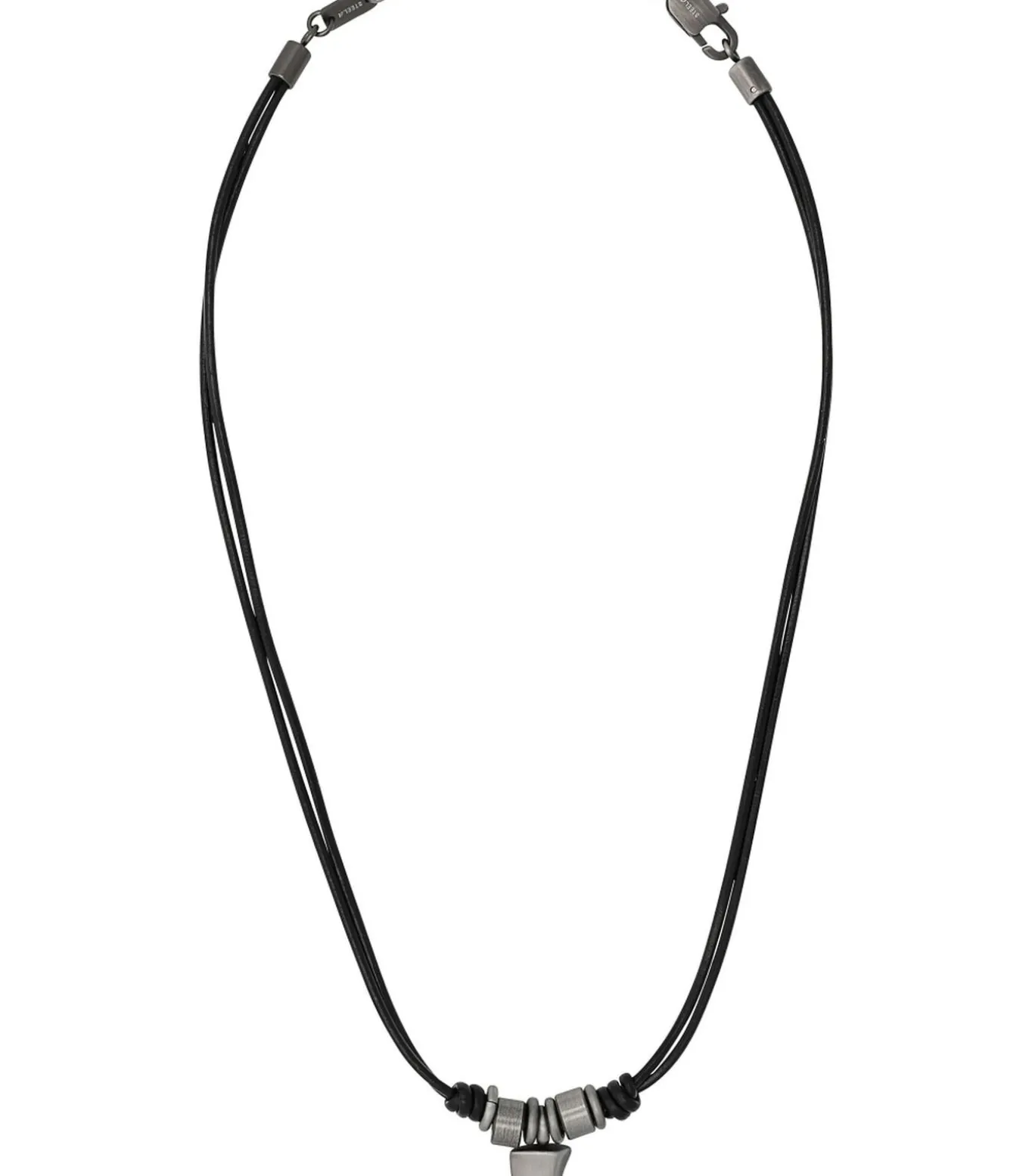 Leren herenketting met hanger van het trendy sieradenmerk s.Oliver. Casual halsketting met kralen en gedetailleerde tandhanger van roestvrij staal. Geweldige combinatie van materialen voor een mannelijke uitstraling: robuust roestvrij staal en slijtvast leer komen hier samen, omgeven door fijne kralen. De dubbelrijige ketting is 45+5 cm lang en kan worden aangepast om perfect te passen. De handige karabijnsluiting is gemakkelijk aan te brengen. Combineer de ketting met andere bijpassende sieraden van s.Oliver of combineer hem met een horloge.