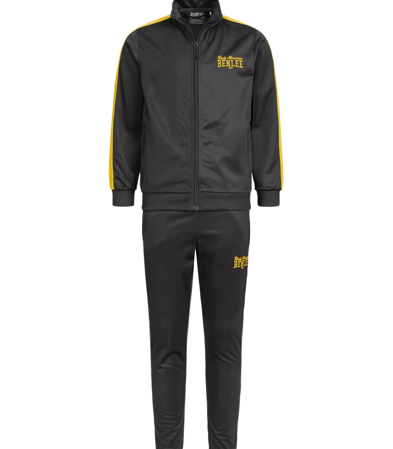 – Modelbeschrijving: jogging met contrasterende kleurdetails zoals logoborduursels of panelen op de schouders/mouwen. Het jack en de broek hebben zakken met ritssluiting.