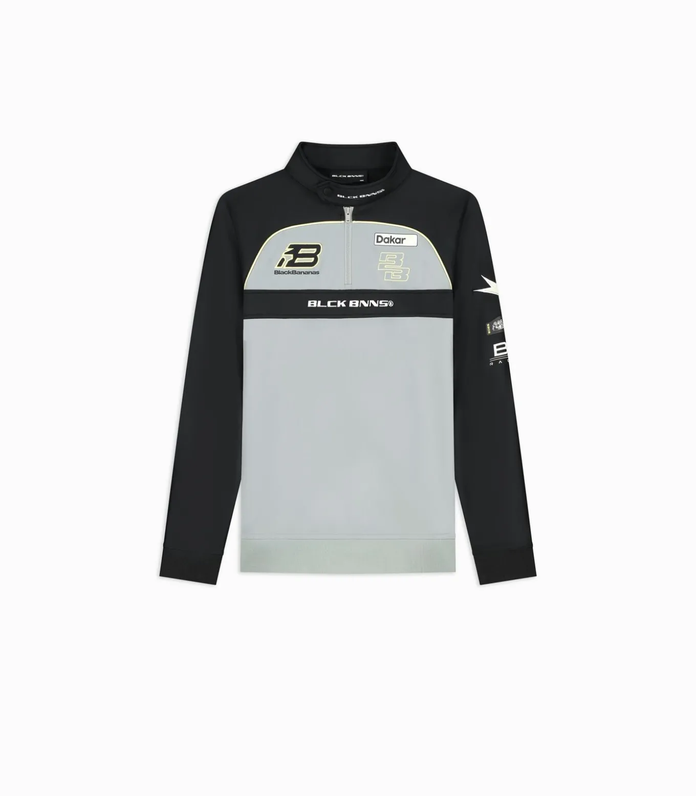 100% Polyester Normale pasvorm Halve ritssluiting met opstaande kraag Black Bananas–branding op de borst, mouwen en kraag Dakar–geïnspireerde racepatches voor een gedurfde motorsport–esthetiek Geribbelde manchetten en zoom Kangoeroezak Kan worden gecombineerd met de Race Trackpants
