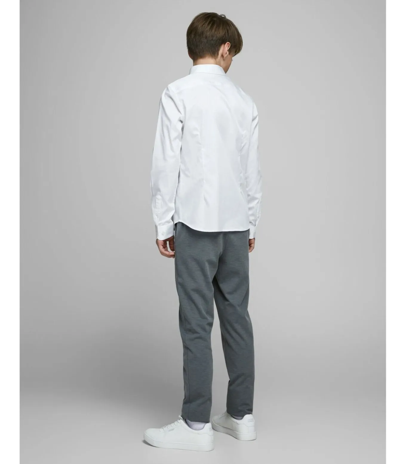BOYS’ JACK&JONES JUNIOR SHIRT – Jongens overhemd met lange mouwen – Ronde zoom – Klassieke kraag – Voor– en achterpijltjes – Manikin meet 158 cm en draagt maat 152 – JACK & JONES JUNIOR 98% Katoen, 2% Elastane Machinewasbaar op 30 °C Gebruik geen bleekmiddel Droog op laag vuur Strijkset op laag vuur. Maximale temperatuur: 100 °C Droge was (behalve trichloorethyleen) Hang op om te drogen.