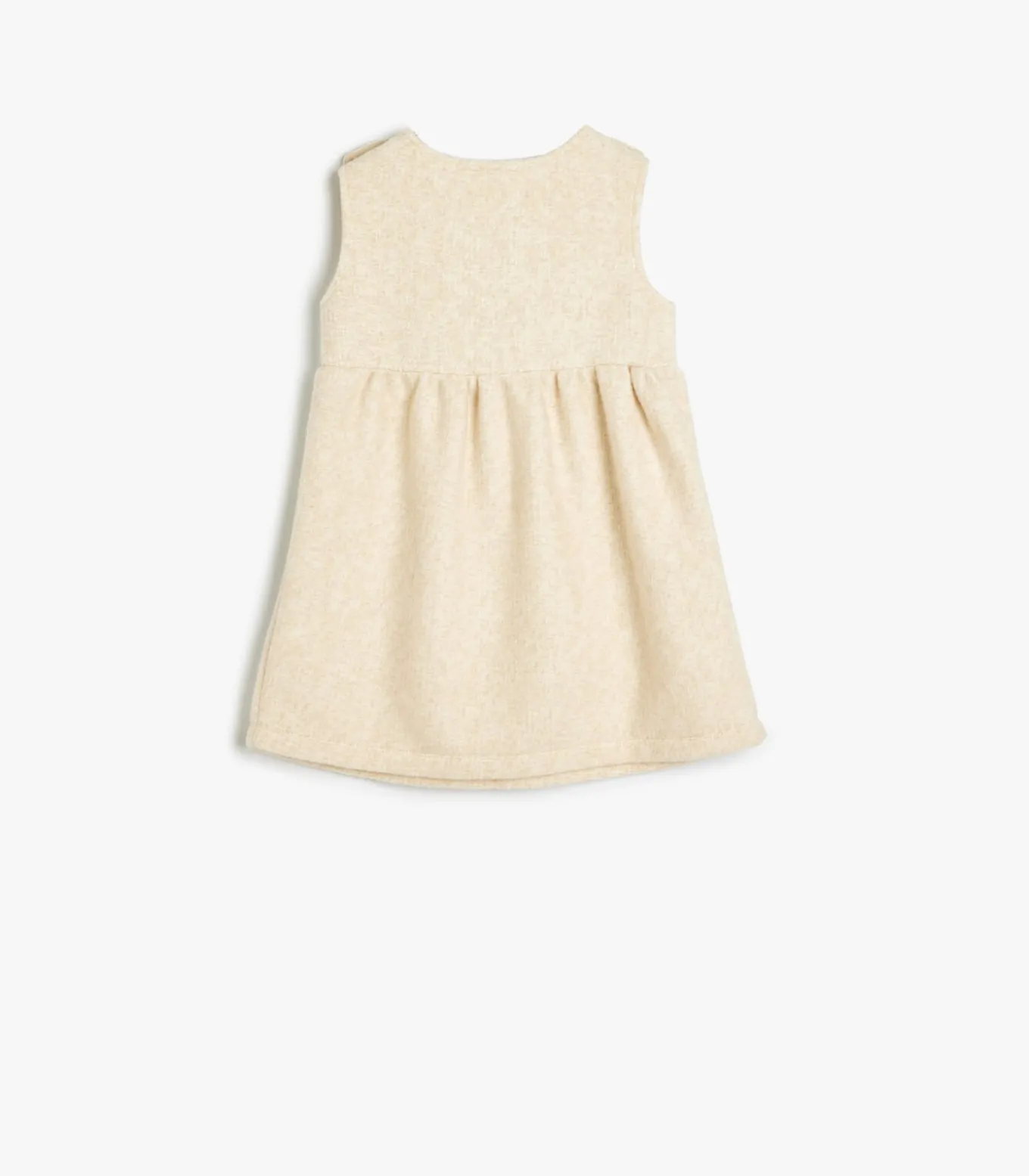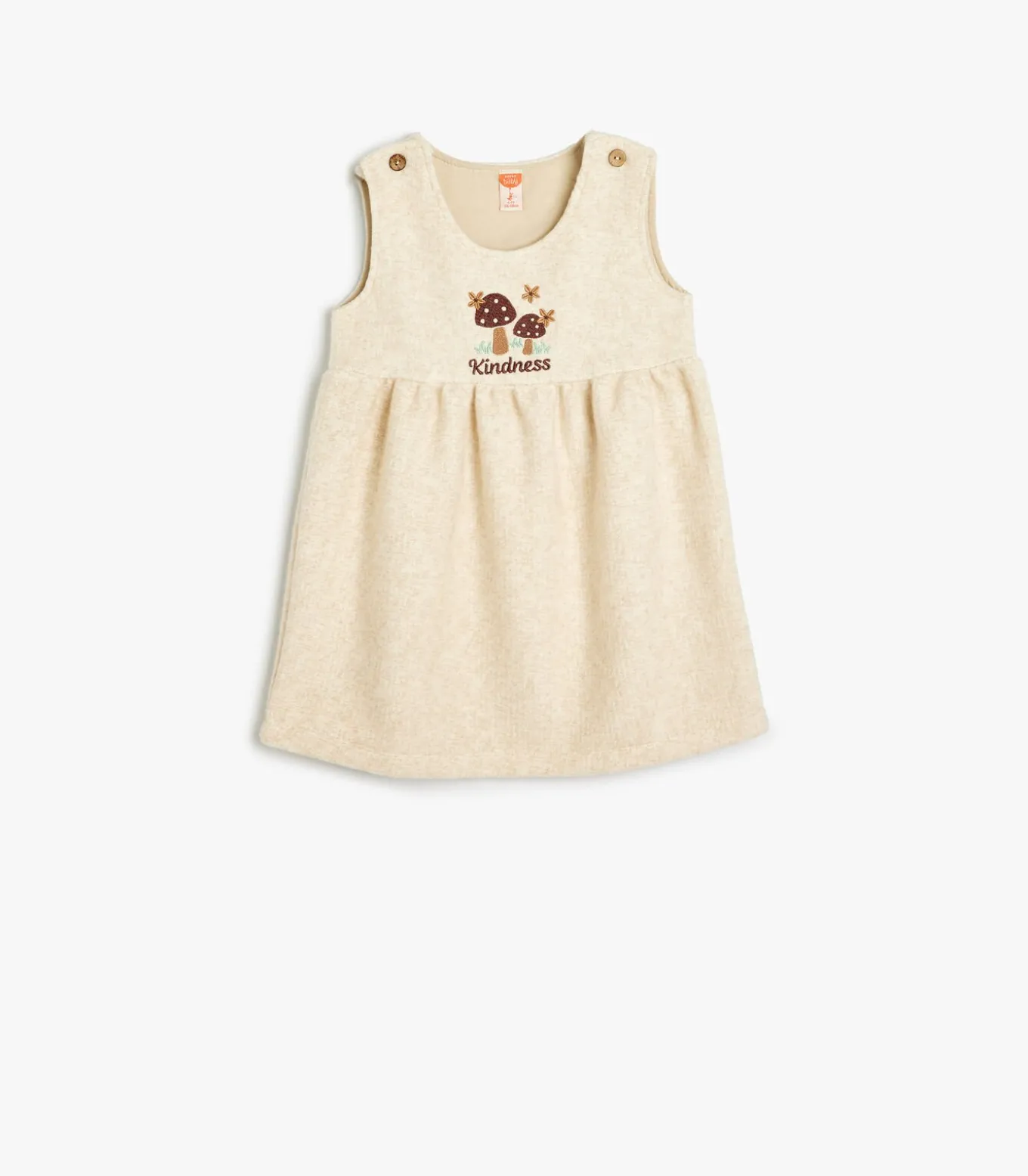 Bci–katoen Zak Gedetailleerd 3D Paddestoel Normaal Vorm A Appliqué dubbele zak Knielengte Mouwloos Korte mouw Ronde kraag Jurk