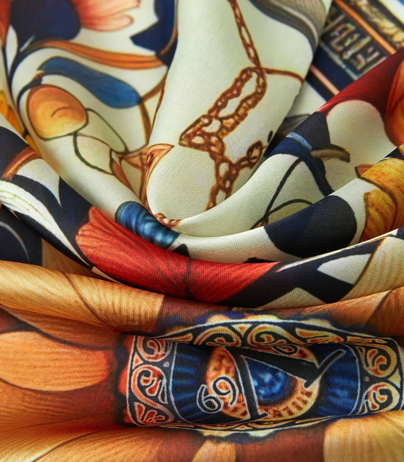 Beschrijving: Deze Royal Flowers zijden carré is een waar kunstwerk, dat een rijk en symmetrisch bloemig mandala verheerlijkt dat gratie en elegantie belichaamt. Gemaakt van 100% zijde, benadrukt deze sjaal van V1969 Italia gedetailleerde bloemmotieven omlijst door sierlijke randen, en weerspiegelt een erfgoed van luxe en verfijning. Met zijn afmetingen van 70×70 cm biedt het een explosie van levendige kleuren en harmonieuze vormen, ideaal om elke outfit met verfijning te verfraaien.Samenvatting:Afmetingen: 70×70 cmMateriaal: 100% zijdeMotief: Bloemen en symmetrische motievenOverheersende kleur: Blauw, goud en roodMerk: V1969 ItaliaCadeaupakket: Geleverd in een luxe bedrukte zak, klaar om cadeau te doen.