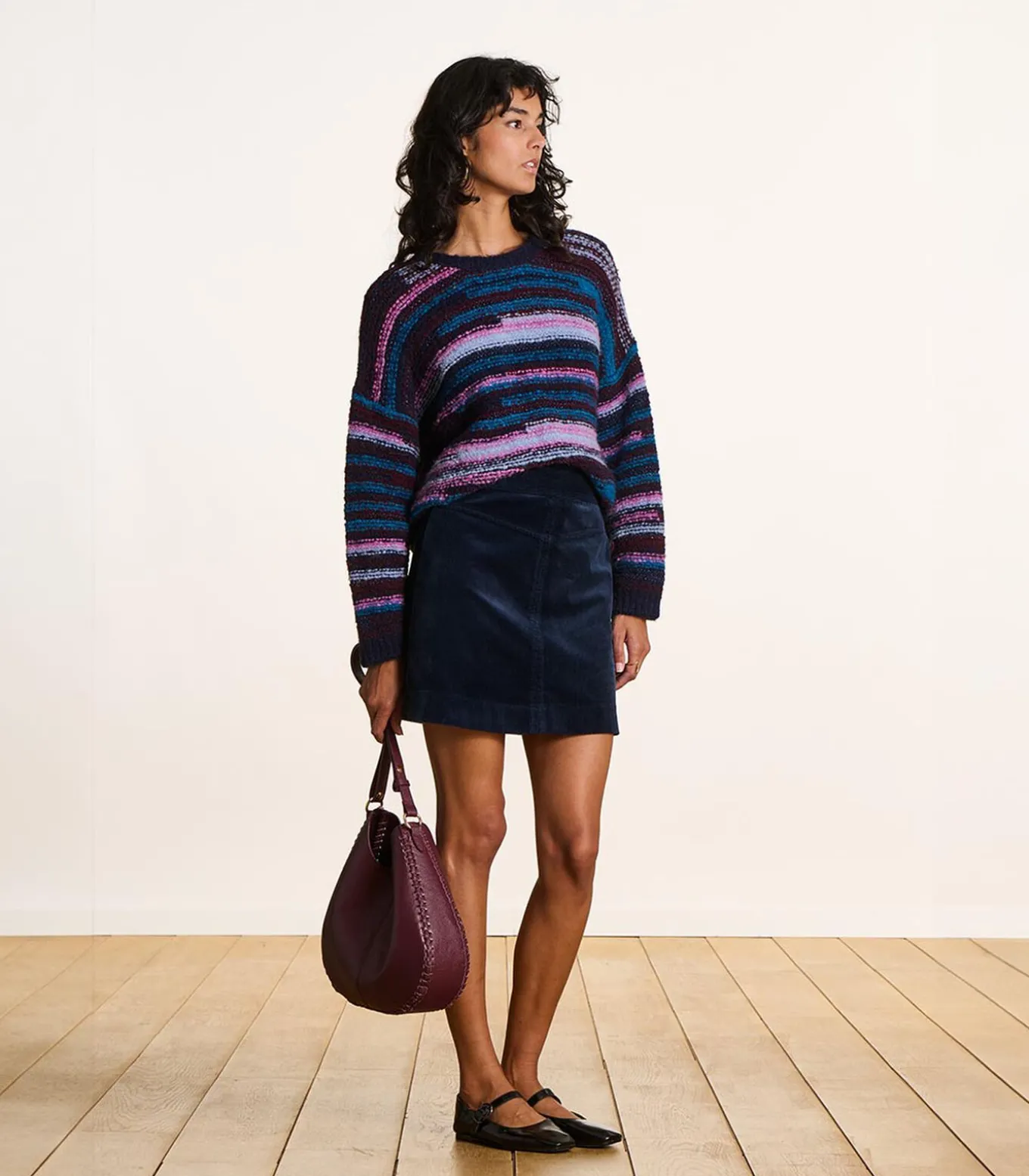 Lange bermuda van ribfluweel in terracottakleur