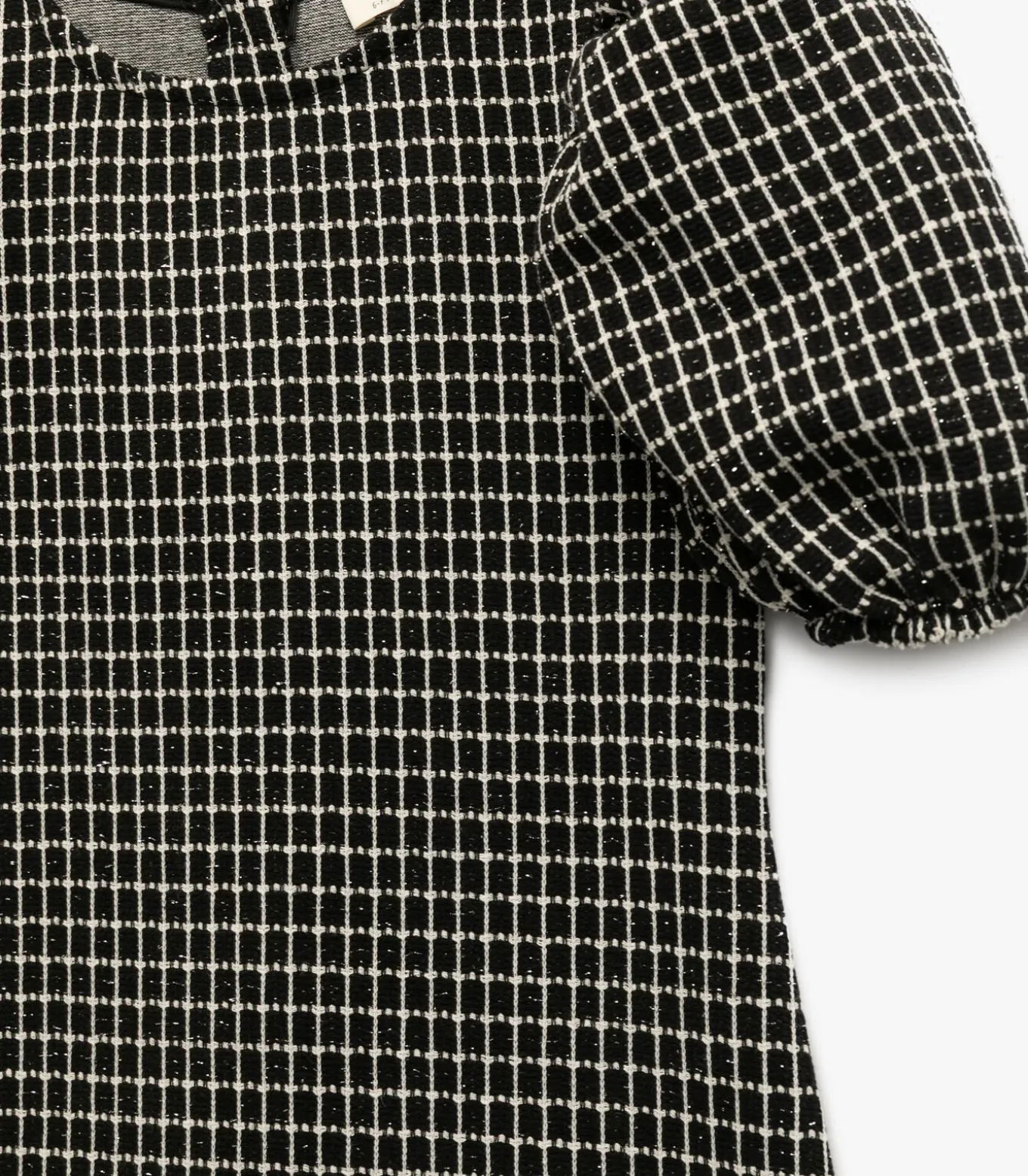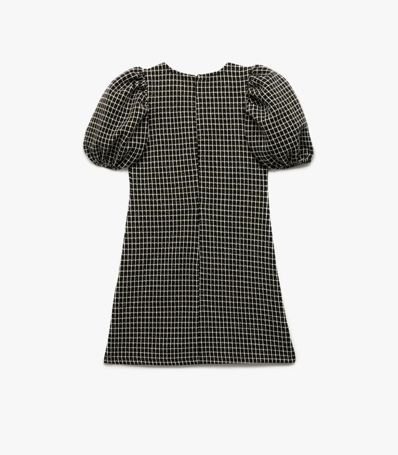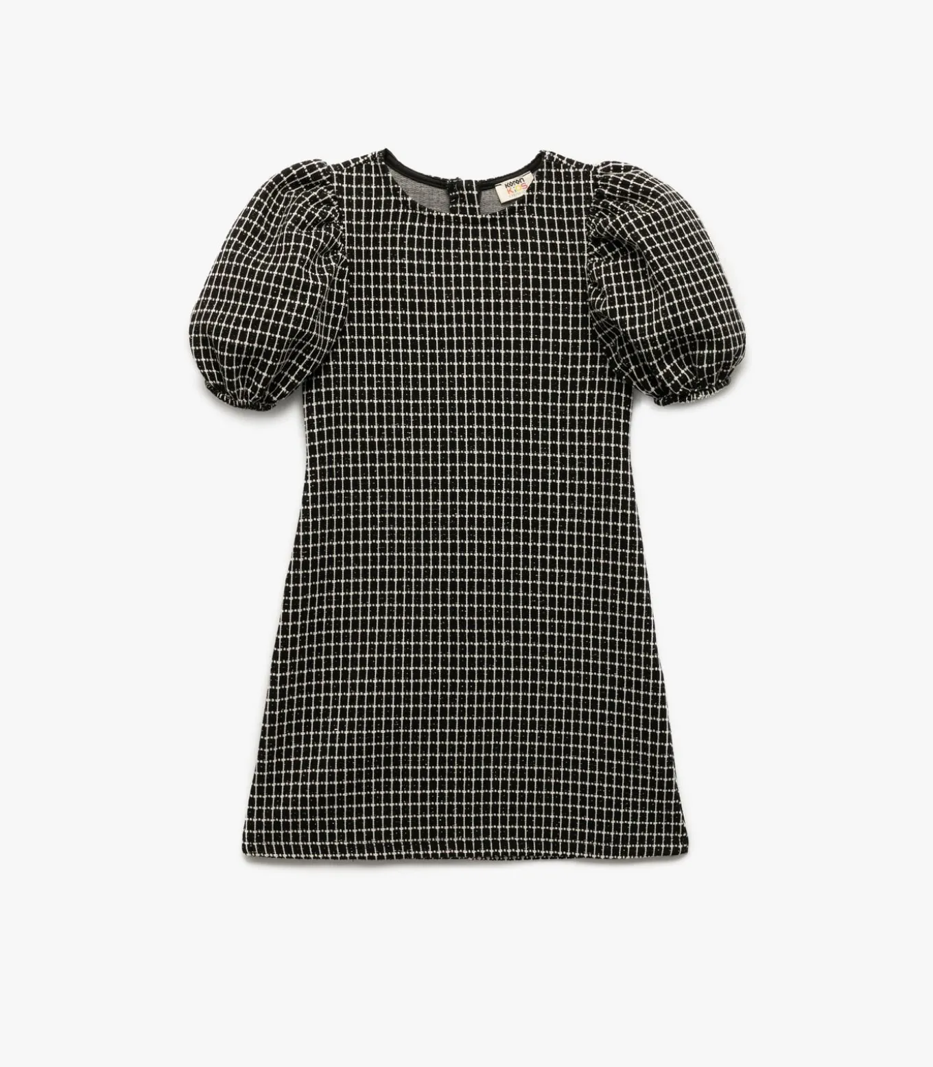 Koton Short sleeve crew neck balloon sleeve glittery tweed dress.