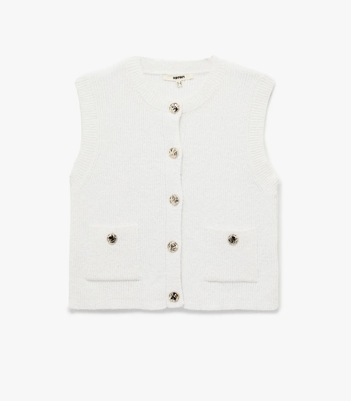 Koton Gold button detail pocketed sleeveless crew neck knitted vest.