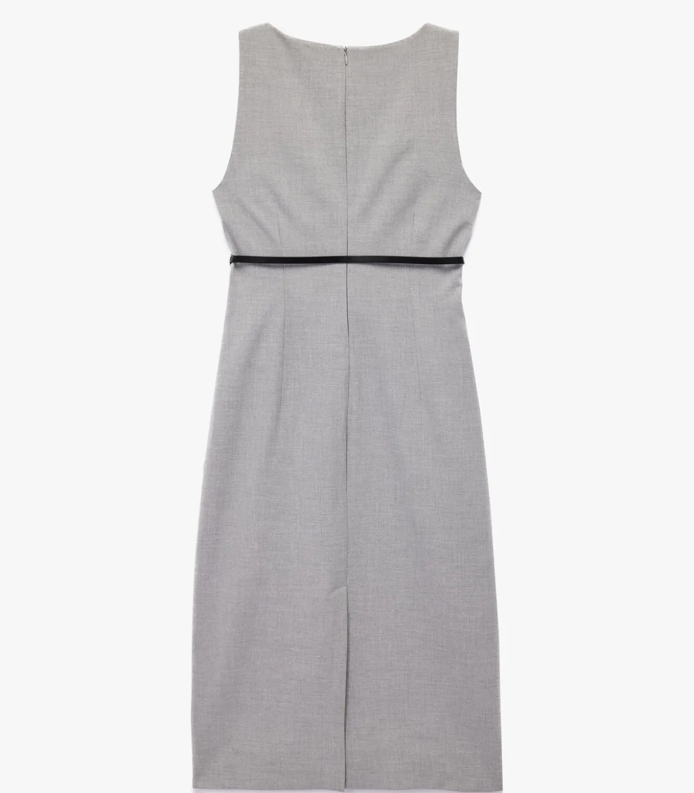 Koton Slim fit sleeveless crew neck belted midi column dress.