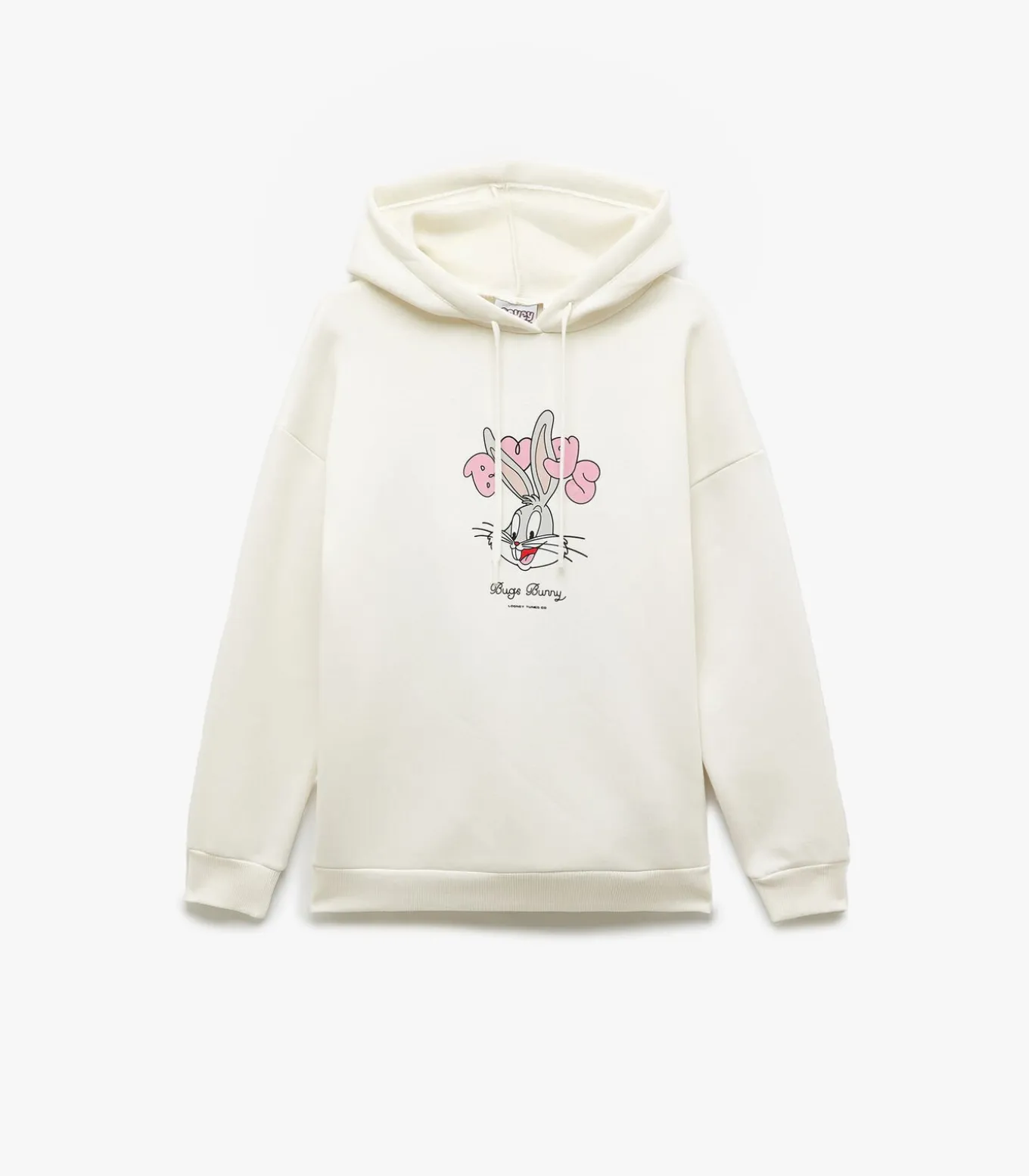 Koton Bugs Bunny licensed zip back printed fleece lined long sleeve hoodie sweatshirt.