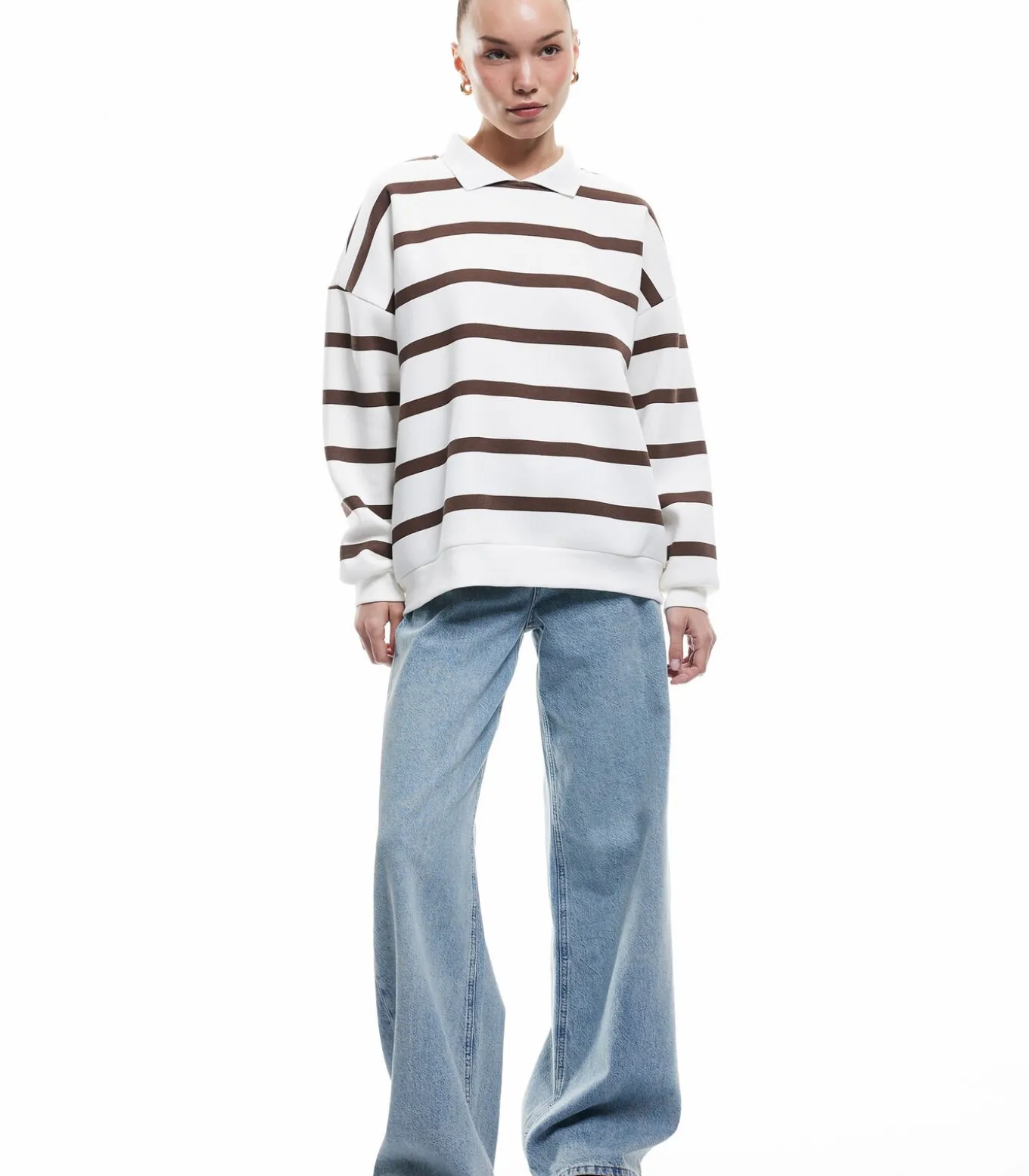 Koton Striped soft interior polo neck oversized sweatshirt.