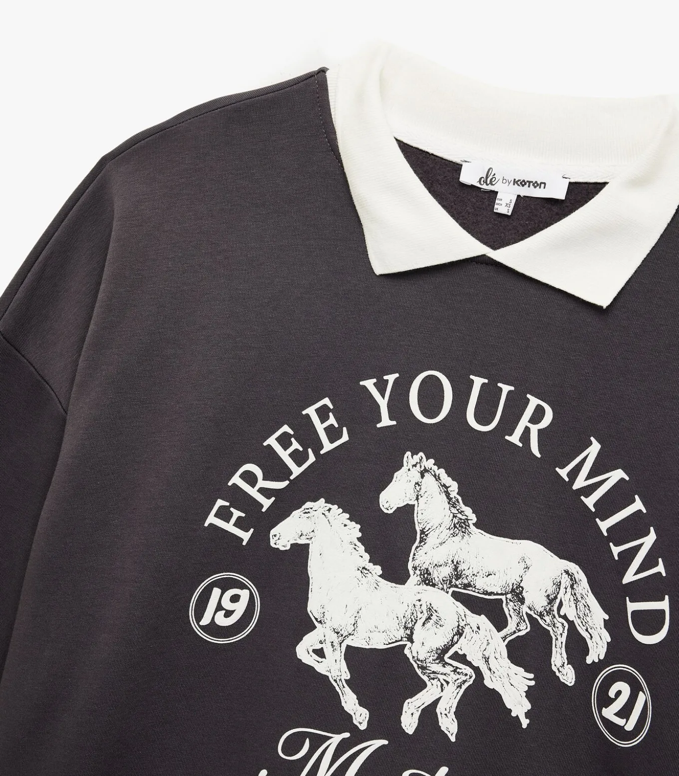 Koton Polo neck long sleeve printed oversized sweatshirt.