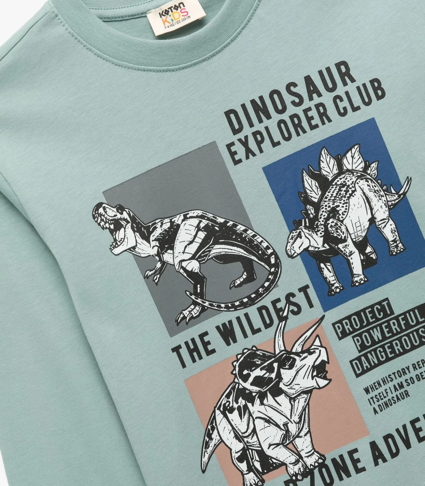 Koton Cotton long sleeve crew neck dinosaur printed t–shirt.