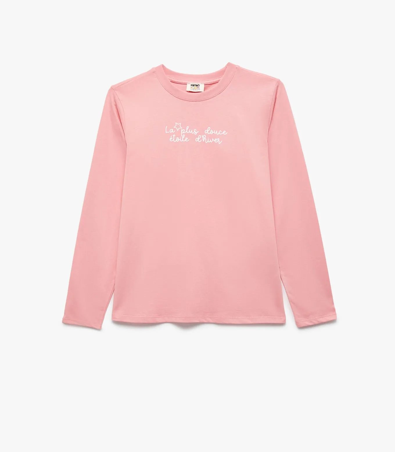Koton Cotton long sleeve crew neck printed t–shirt.